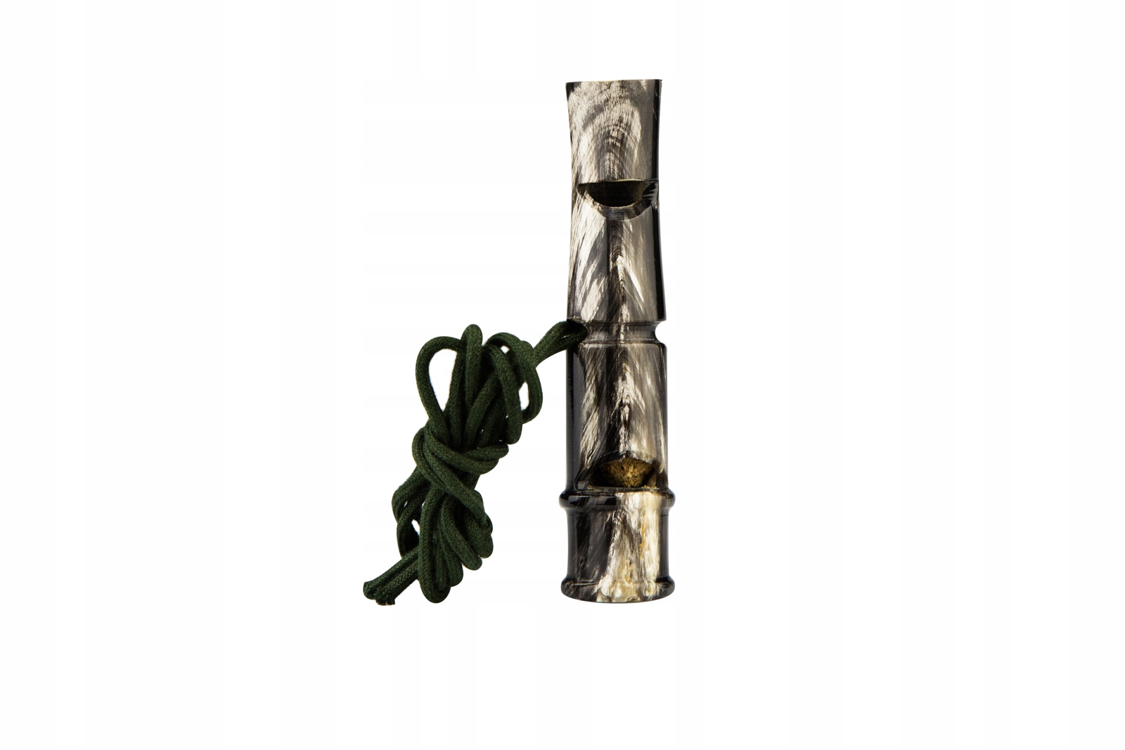 Виготовлена з рогу буйвола, чорного (домінуючий колір). Кожен свисток має різний красивий «малюнок» залежно від індивідуального кольору ріжка.