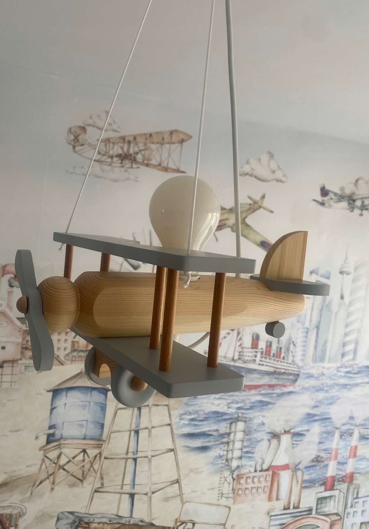 Дитячий стельовий світильник-літак - дуже цікаве та оригінальне дитяче світлове рішення. З думкою про найменших клієнтів ми створили підвісний дерев’яний світильник Plane. Розробляючи підвісний світильник Літак, ми подбали про найдрібніші деталі, щоб він розвивав, навчав і приносив радість дітям. Світлодіодний підвісний стельовий світильник у формі літака покритий безпечними натуральними фарбами на водній основі. Виготовлена з деревини сосни, що робить її міцним і довговічним освітленням протягом багатьох років.