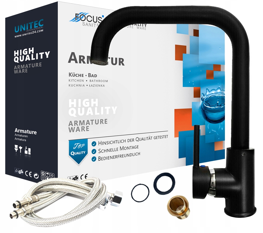 - Набір для встановлення включено (шайби, прокладки, шланги)