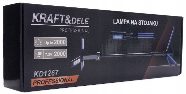 Професійний світильник на підставці від Kraf&Dele, модель KD1267 - це практичний прилад для освітлення та освітлення приміщень. Пристрій ідеально підходить для освітлення під час ремонтних робіт, таких як фарбування, шпатлювання і т. д. Також його часто використовують у фотостудії. Лампа має водонепроникний, добре сконструйований алюмінієвий корпус. Лампа оснащена потужним акумулятором ємністю 4000 мАг, що забезпечує безперервну роботу до 8,5 годин.