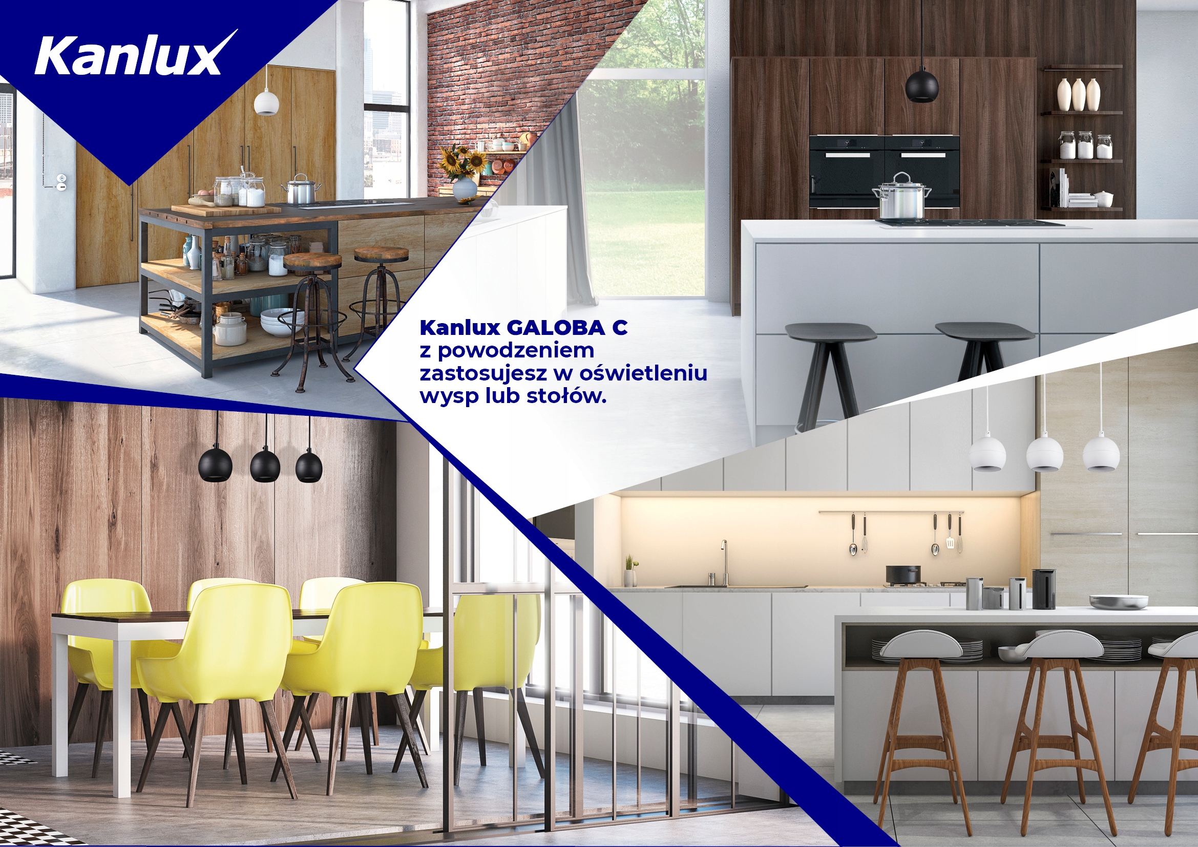 Kanlux GALOBA — це повна серія освітлювальних приладів, яка включає підвісні лампи (GALOBA C), настінні світильники (GALOBA W), а також настінні та стельові світильники. Підвісні світильники Kanlux GALOBA C з успіхом можна використовувати для освітлення островів або столів, настінні та стельові світильники (від 1 до 4 точок світла) можна використовувати у вітальні, холі або спальні. Аранжування доповнять настінні світильники з вимикачем в основі. Вся серія світильників Kanlux GALOBA має знімний абажур, завдяки якому ми можемо швидко і зручно замінити джерела світла.