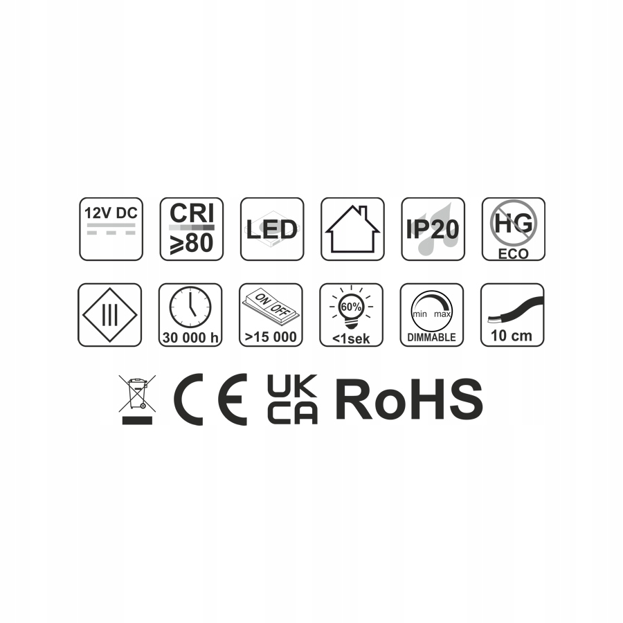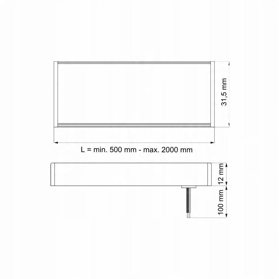 Кожний світильник має кабель живлення довжиною 100 мм, до якого необхідно подати напругу 12 В постійного струму b>, з регулюванням потужності відповідно до довжини лампи (довжина лампи визначає максимальну потужність світлодіодного освітлення).