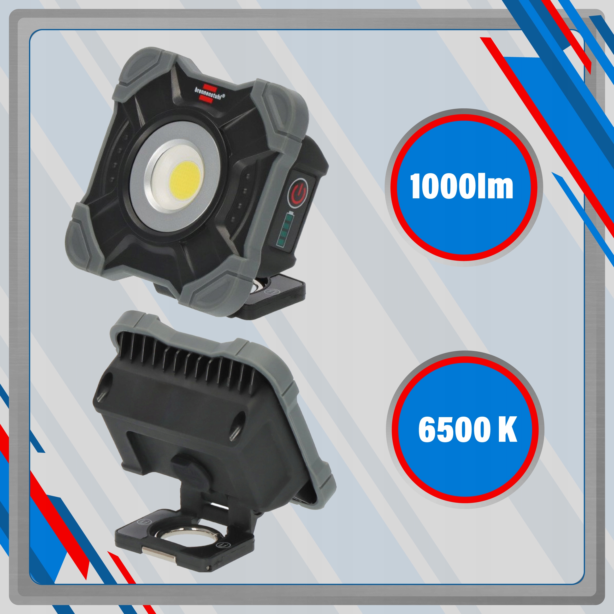 Мобільний світлодіодний прожекторвід відомого німецького бренду Brennenstuhlє чудовим джерелом світла . Йогосвітіння (1000 лм!) освітить навітьвеликий робочий простір. Крім того, це зовсім не сліпить! Завдяки своїм вражаючим технічним параметрам, світильник відмінно підходить як для будівельних майданчиків, так і для зовнішнього використання. Незважаючи на кишеньковий розмір (10 см x 10 см x 4 см) і малу вагу (0,25 кг), віндуже міцний! Все це означає, що він точно виправдає всі покладені на нього очікування!!