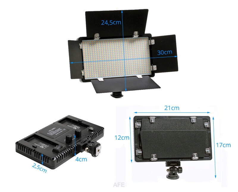 Лампа має два типи діодів, завдяки яким ми можемо отримати світло з кольором від 3200 K (теплий колір) до 6500 K ( холодний колір). Потужність світла можна плавно регулювати в діапазоні 0-100% за допомогою ручок, щоб освітлювати композицію належним чином. Прилад оснащений перемикачем, що дозволяє змінювати живлення від мережі до батарейок. На задній панелі є діод, що інформує про стан батареї.