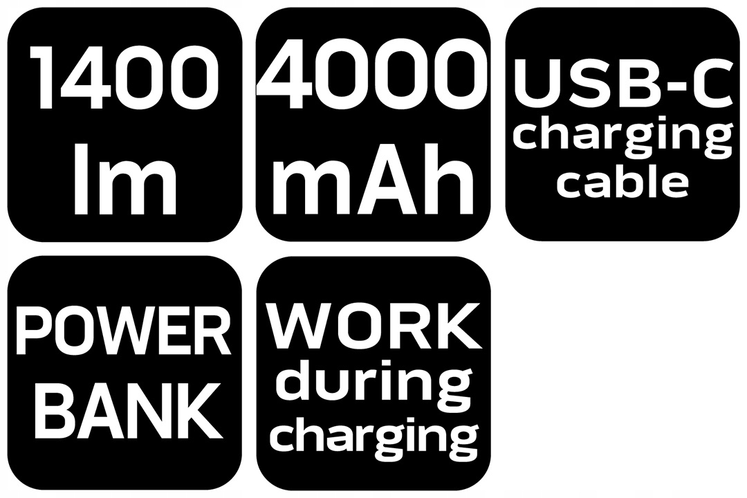✔️Потужність світла: 1400 люмен - забезпечує інтенсивне та широке освітлення робочої зони.