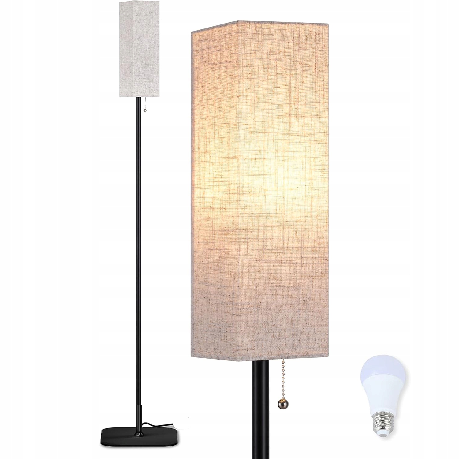 - Наш торшер поєднує чорну металеву опору з квадратним абажуром із бежевого льону. Він не тільки забезпечує функціональне освітлення, але і є вишуканим декоративним елементом. Цей торшер підходить для різноманітних домашніх інтер’єрів, таких як ретро, сучасний, скандинавський тощо. Він ідеально підходить для віталень, спалень і офісів, забезпечуючи ідеальне освітлення для будь-якого випадку.