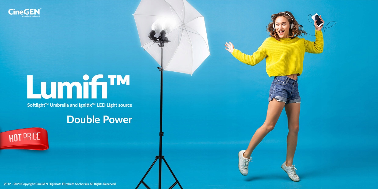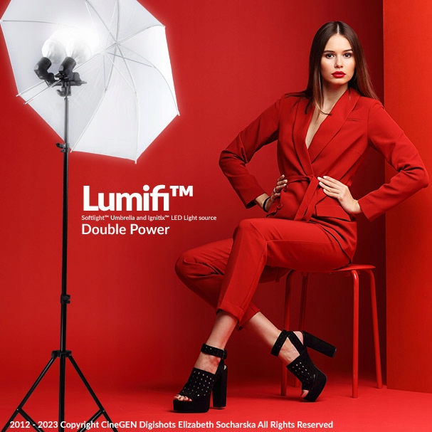 Lumifi™ - це нове покоління студійних ламп безперервного світла на основі світлодіодного джерела світлаIgnitix™ і дифузійних парасольокSoftligt™. Лампи серії Lumifi забезпечують яскраве, природне світло з температурою 5500К, що запобігає спотворенню кольору під час фото- та відеозйомки. Дифузійна парасолька пом'якшує контрасти і згладжує тіні. Ідеально підходить для портретної, модної та товарної фотографії. Усе це з відмінною енергоефективністю.