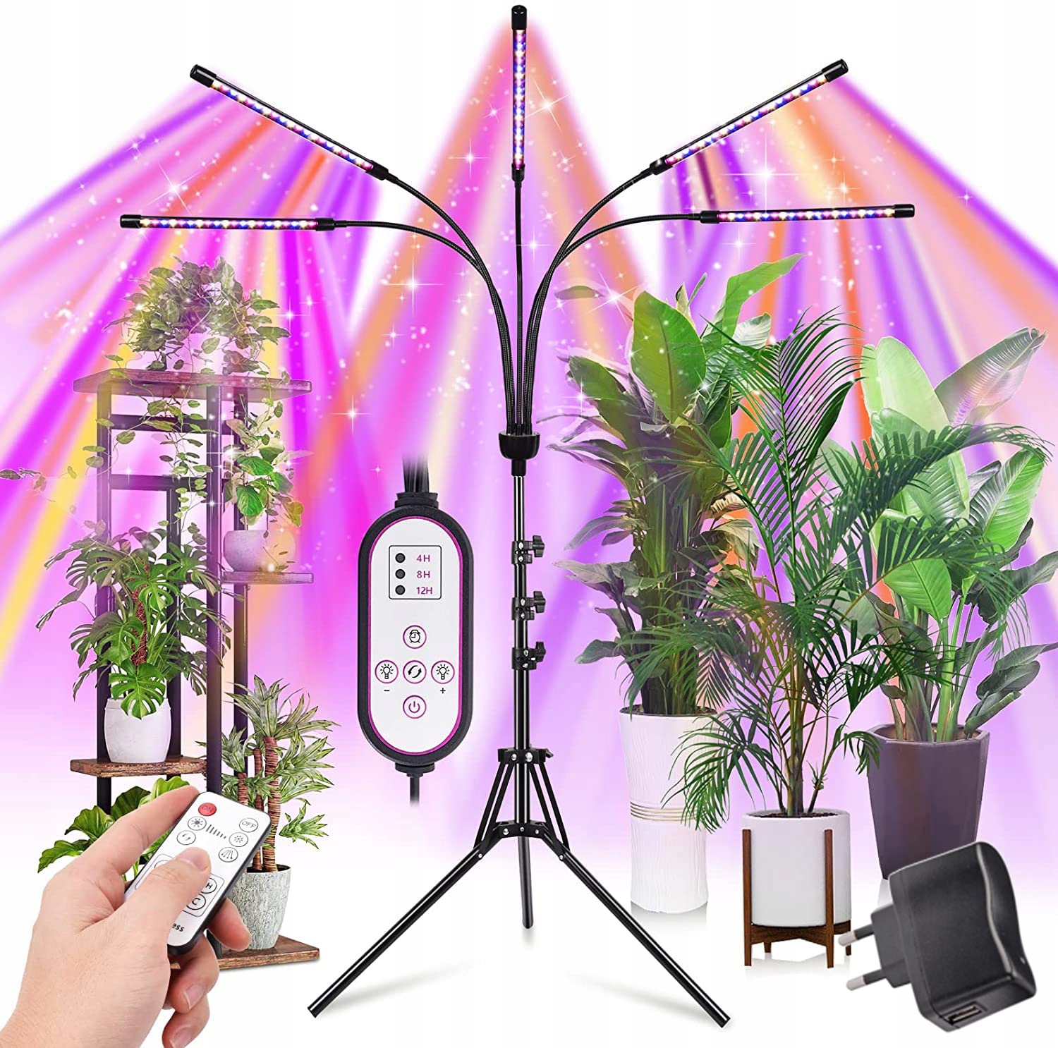 ✔️ Інформація про товар: П'ять головок, 1,6 м регульована підставка, дротове керування, пульт керування за допомогою годинника