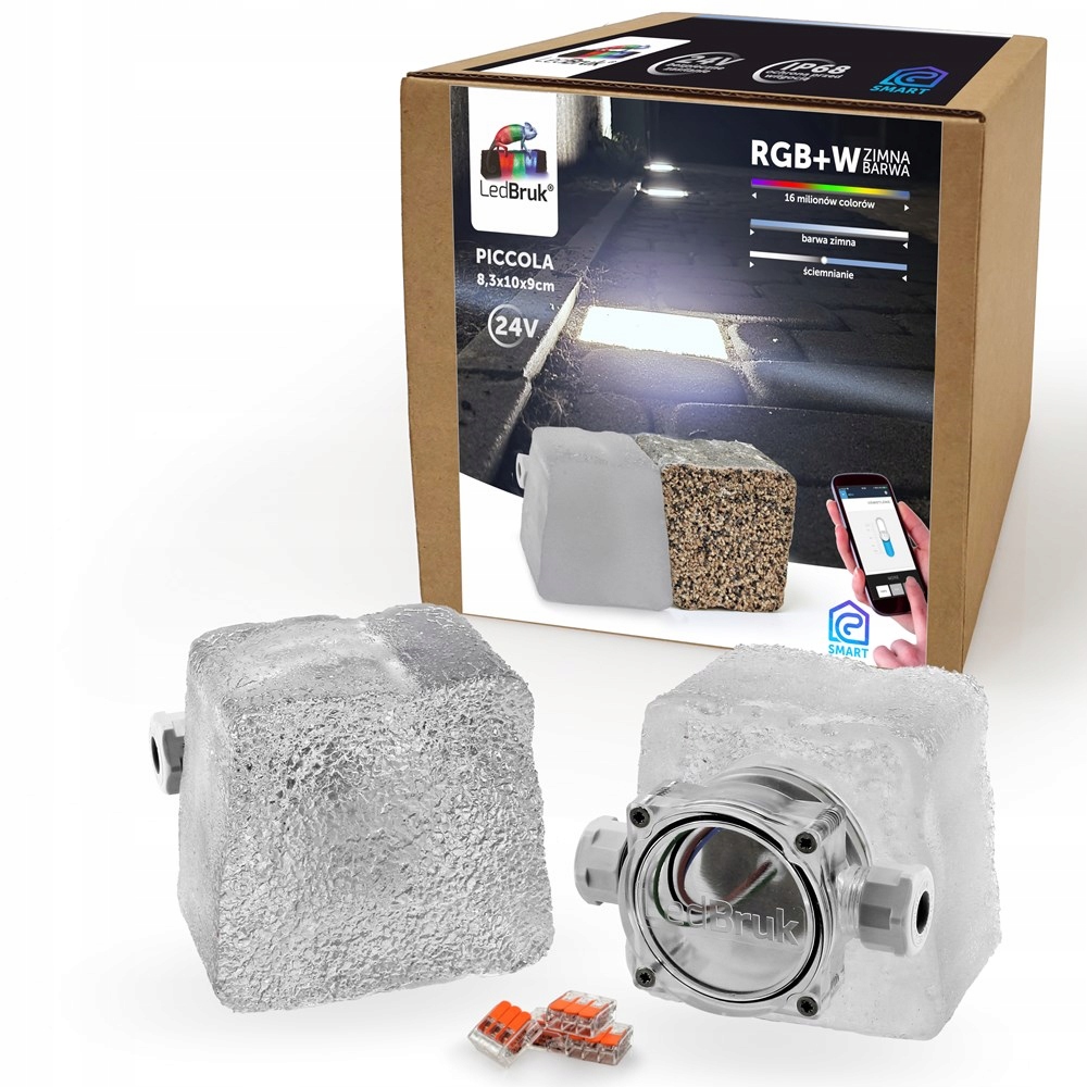 Світлодіодний світлодіодний куб для тротуарної плитки — це інноваційний освітлювальний прилад для входу. Встановлений серед бруківки, це цікава та унікальна форма освітлення під’їзних шляхів, садових доріжок, терас і фасадів. Він ідеально вписується в тротуар, залишаючись практично непомітним протягом дня. Версії RGB+W мають унікальну на ринку можливість вибору кольору освітлення світильника, зберігаючи при цьому функціональність білого світла. Це дозволяє поєднати декоративну функцію (вільний вибір кольору світла лампи) та функціональну функцію (потужне біле світло). Таким чином, бруківка, що світиться, може як створювати атмосферу, так і «фарбувати» довкілля світлом у повному спектрі кольорів, а також бути приладом, який освітлює простір білим світлом. Широкий вибір візерунків, що відповідають популярній на ринку бруківці, дозволяє підібрати світлову бруківку практично для будь-якого типу бруківки.