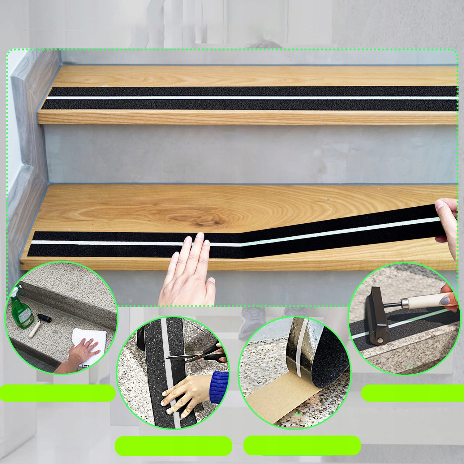 ▶ Самоклеючу нековзку захисну стрічку для сходинок зі світловими стрічками дуже легко встановити на будь-які сходи. Його шорстка поверхня забезпечує гарне зчеплення.