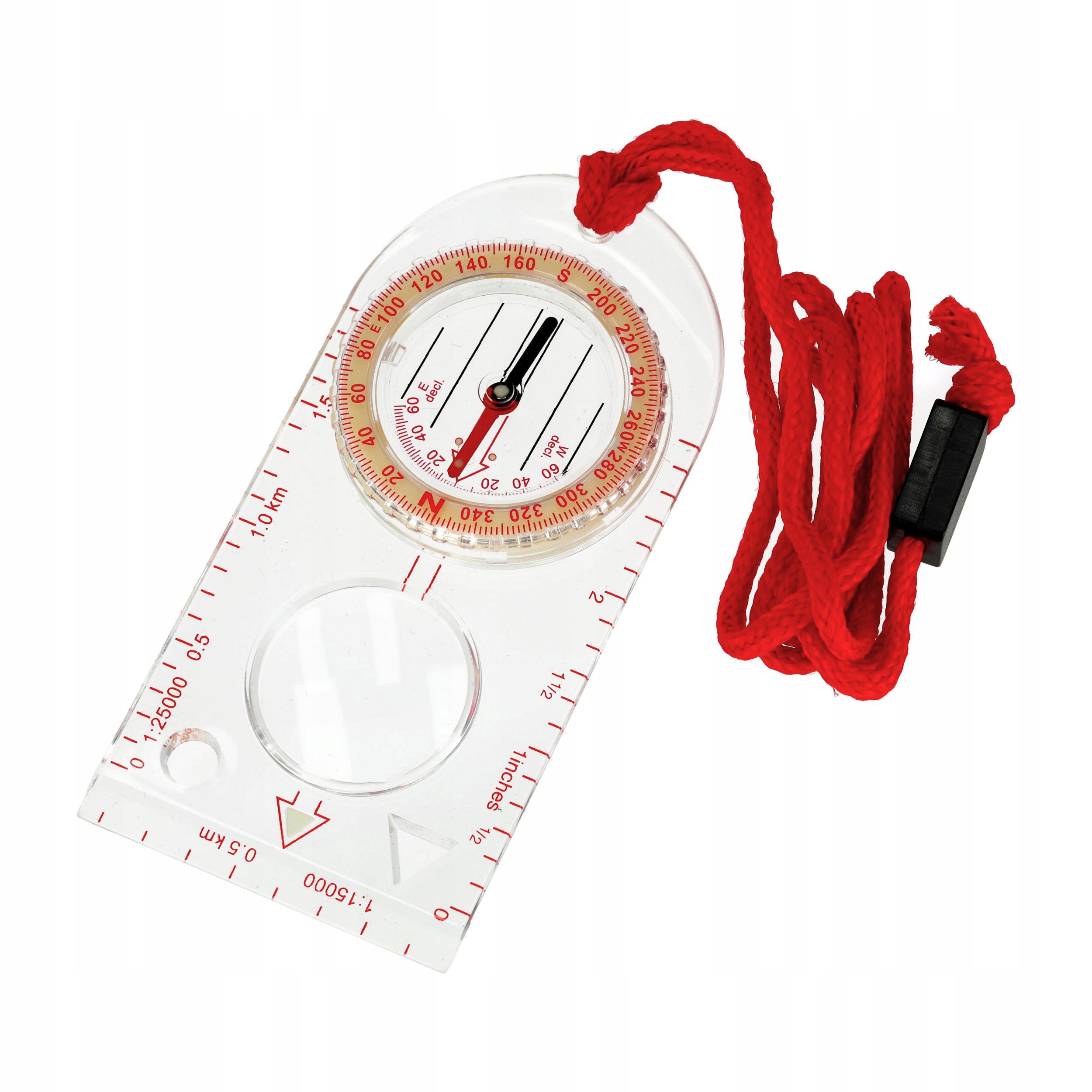 Стійкий картографічний компас Fosco Industries виготовлено з прозорого полікарбонату. Міцний і надійний, він має флуоресцентне кільце, що обертається, плаваючу голку з флуоресцентним вістрям, шкалу з лінійкою та шкалою та збільшувальне скло на пластині.