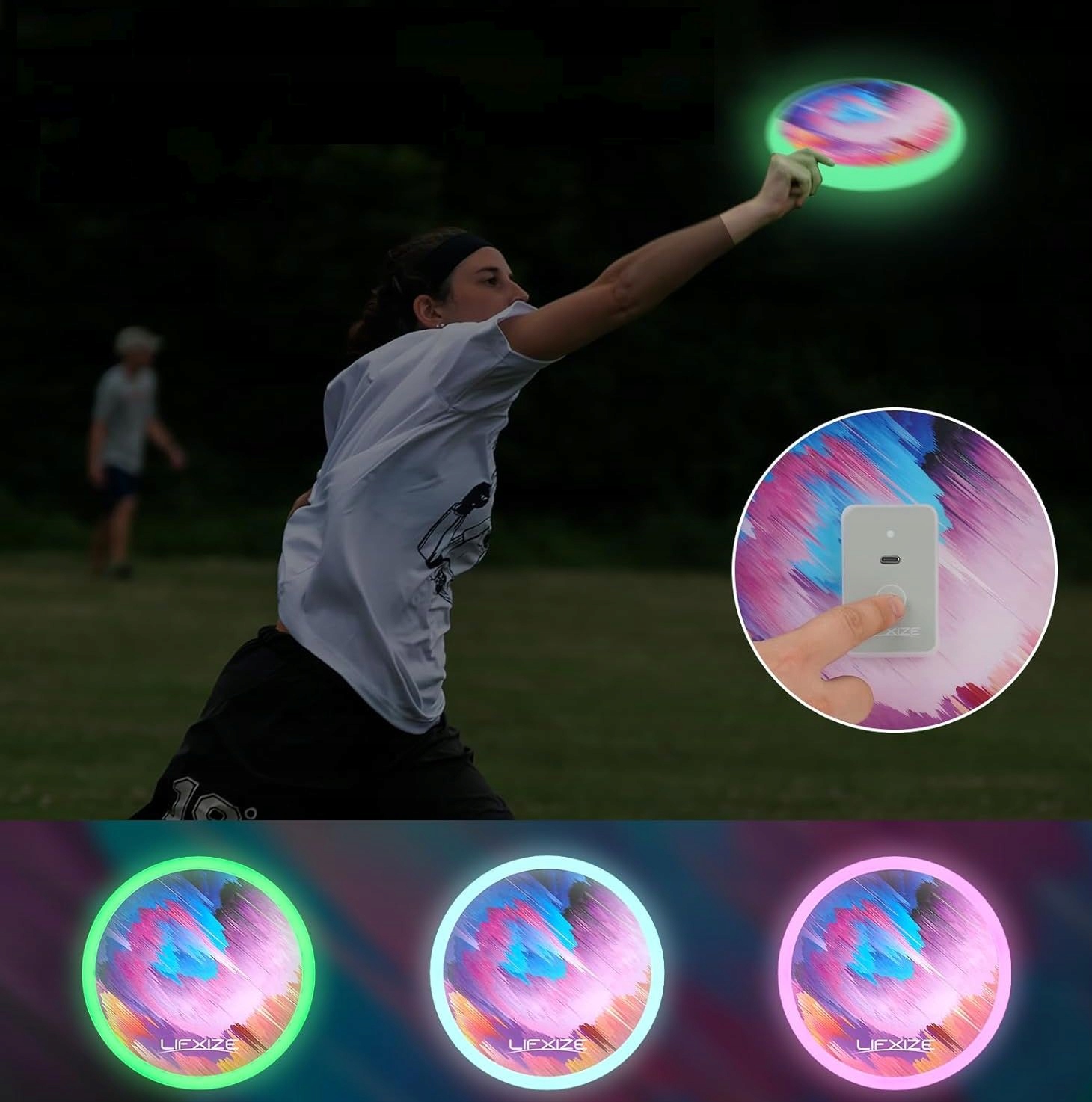 - Яскраве 3-кольорове світлодіодне освітлення: Flying Disc оснащено білими, фіолетовими та зеленими світлодіодами та забезпечує ще більше напруги завдяки яскравості. наявність. За допомогою перемикача ви можете легко вмикати та вимикати світло, відкриваючи захоплюючі можливості для нічних ігор у фрізбі, які виділяються.