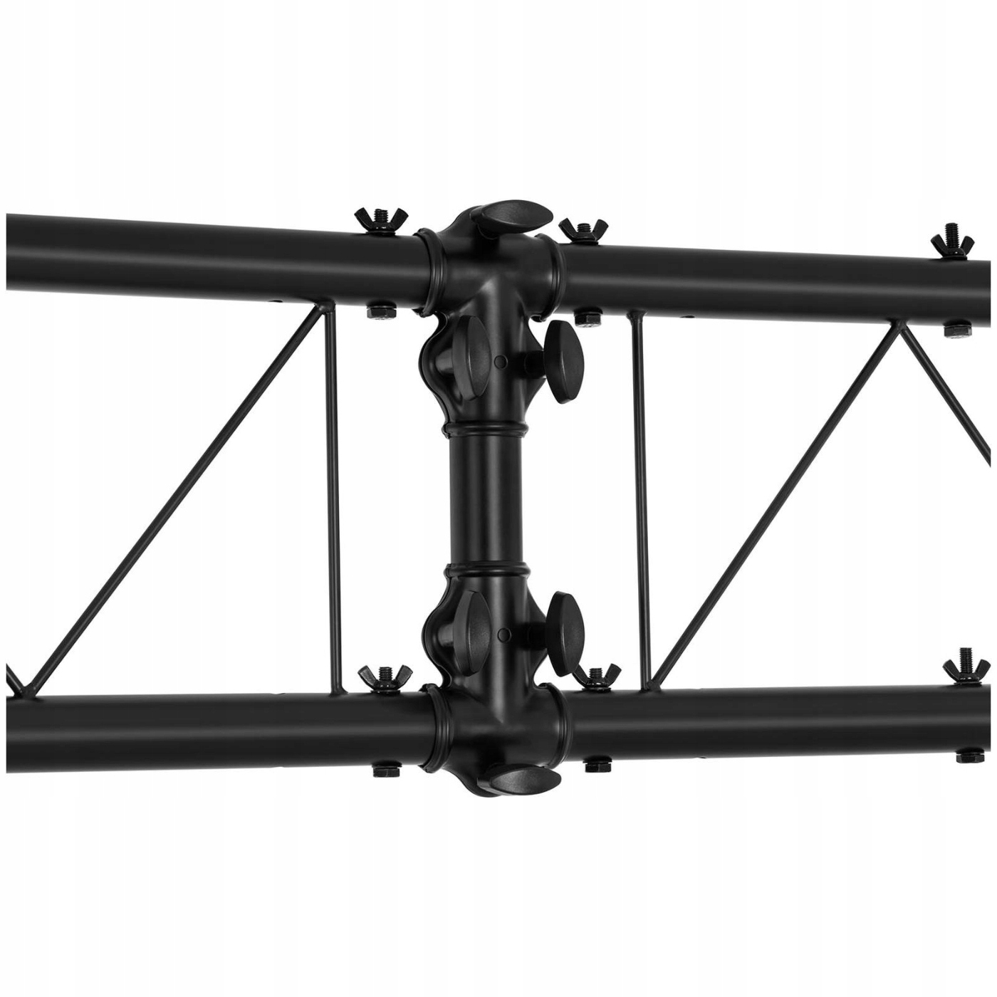 Практичність підставки обумовлена можливістю регулювання висоти в діапазоні від 1500 до 3500 мм. Освітлення загальною вагою до 150 кг можна успішно підвісити на міст довжиною 3000 мм. Сталева конструкція є міцною та повністю мобільною.