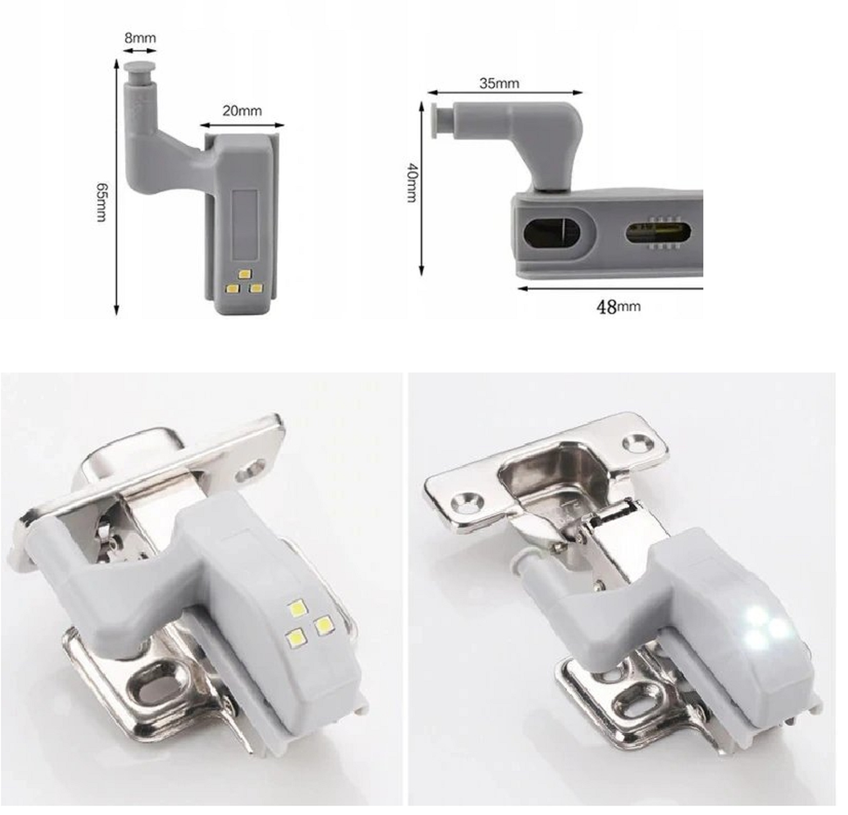 СВІТЛІ ДЛЯ ШАФИ 3 x LED ДЛЯ ПЕТЕЛЬ ДВЕРЕЙ ШАФИ LETHE 4 шт.