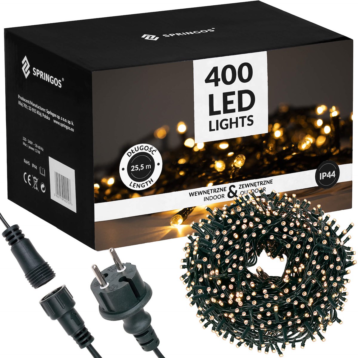 СВІТЛІ НА ЯЛИНКУ 400LED ЗОВНІШНІ ЛАМПИ ТЕПЛИЙ БІЛИЙ 19,5м ОСВІТЛЕННЯ