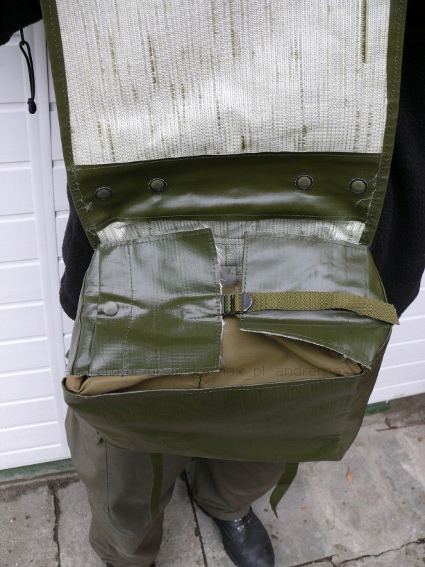 Сумка також має регульований ремінь і сітку внизу, що дозволяє прикріпити, наприклад. куртка або манери.