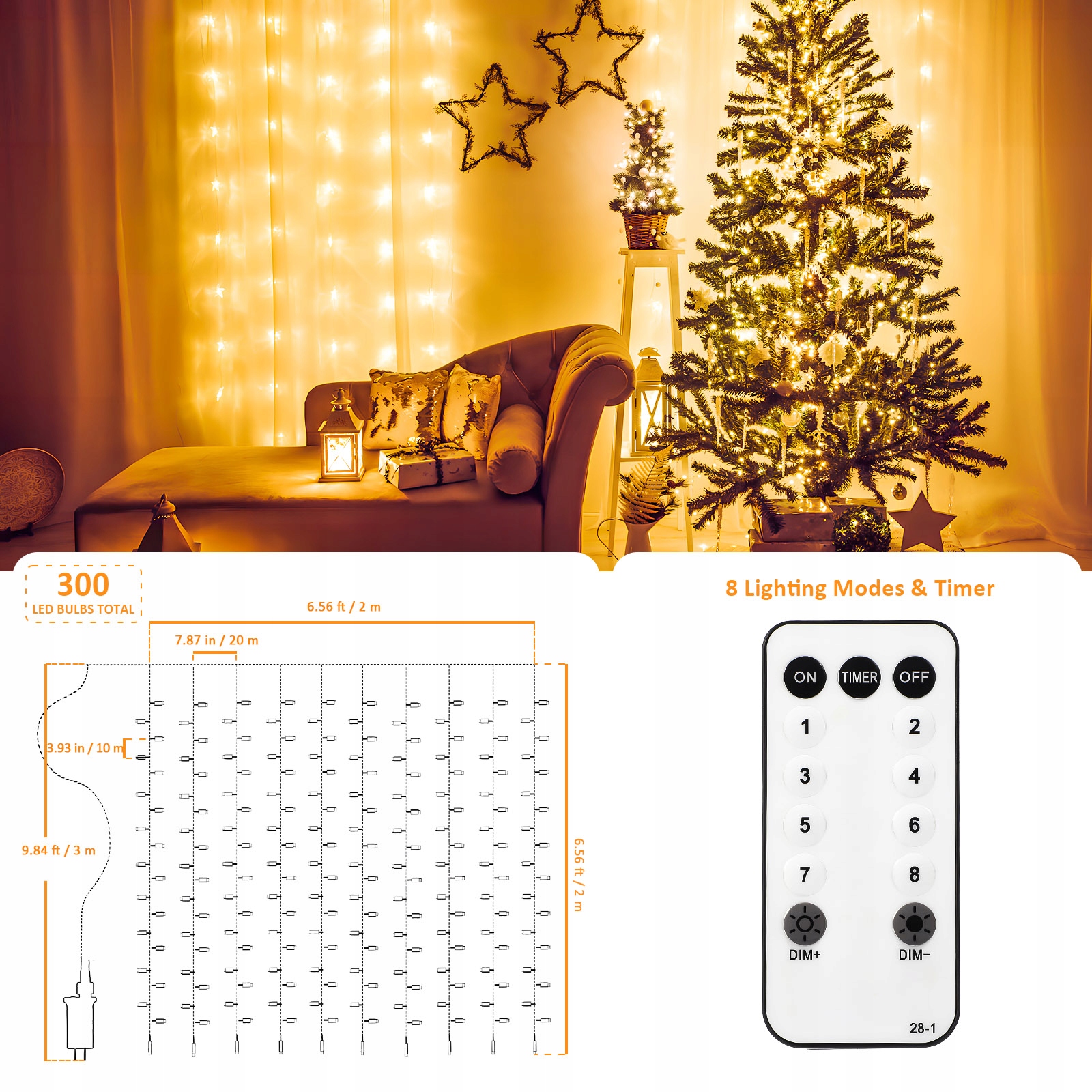 ✅ ВИКОРИСТАННЯ ЗОВНІШНЬОГО ТА В ПРИМІЩЕННЯХ ✅ СВІТЛИЙ КОЛІР: ТЕПЛИЙ БІЛИЙ ✅ ШИРИНА: 3 М / ВИСОТА: 3 М