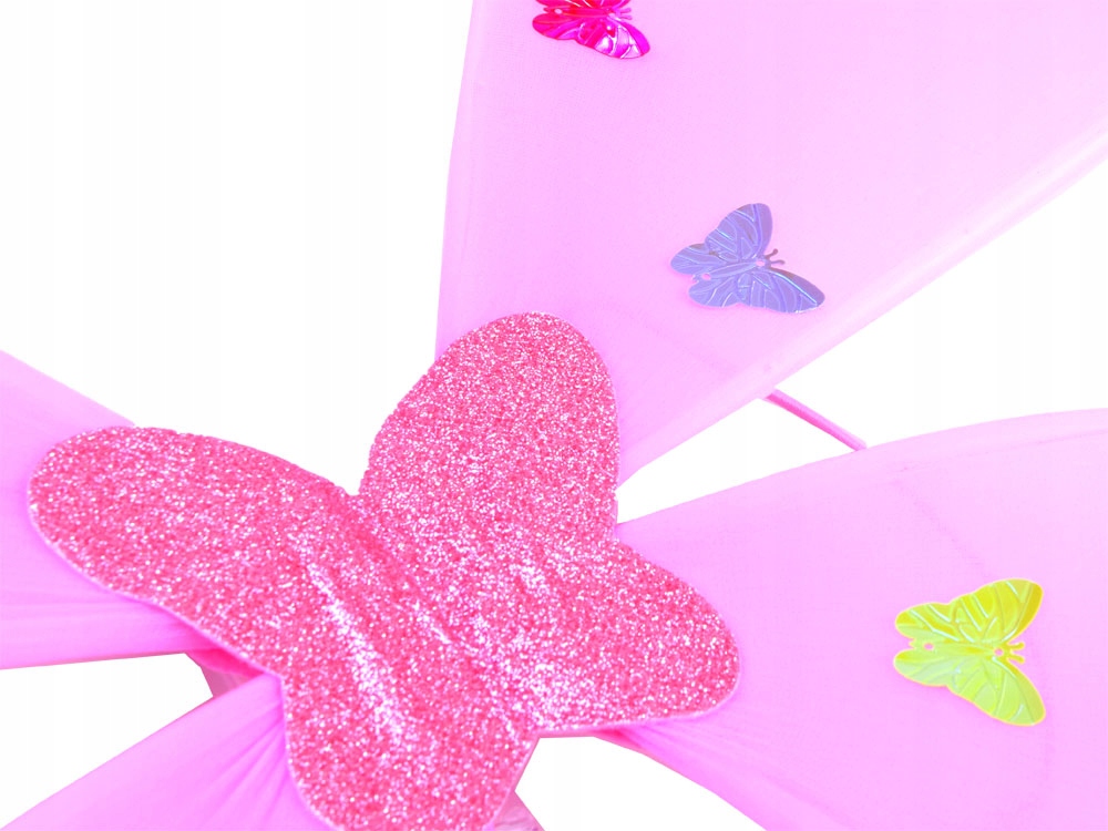 - Рожеві крила, до яких кольорні метелики були прикріплені ,