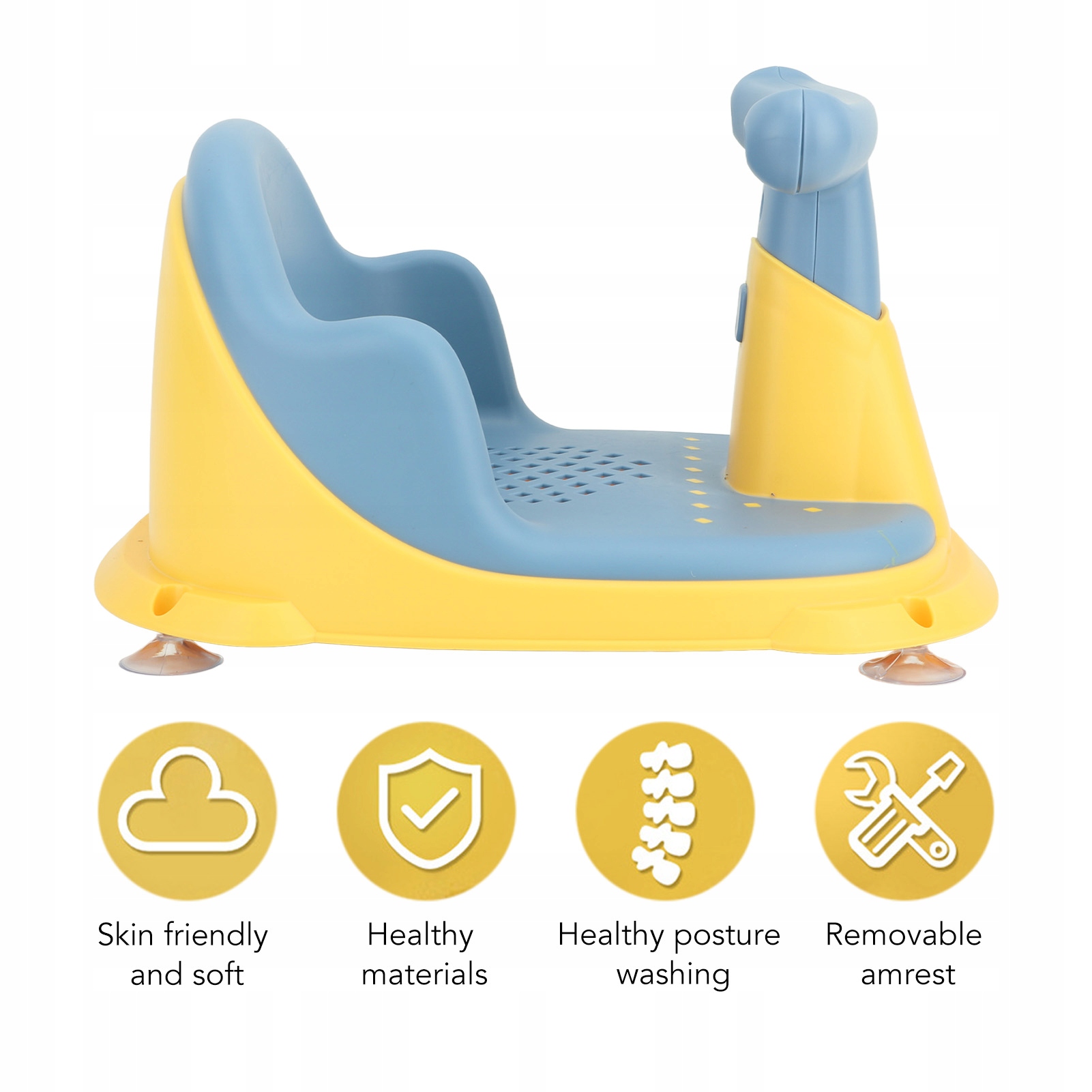 3. Матеріал: Виготовлений з пластику, який не є, безпечним, красивим, модним, екологічно чистим та здоровим. Стійкість до низьких температур, стійкого до температури матеріалу. Підтримка спини: Враховуючи, що різні розміри дітей потребують різних спини спинки, сидіння сидіння до ванни можна скласти та адаптувати. Подарунок: Ви можете придбати це продумане та практичне сидіння для ванни для молодих матерів, друзів, які мають бухту як чарівний подарунок для вікна або душ для дитини.