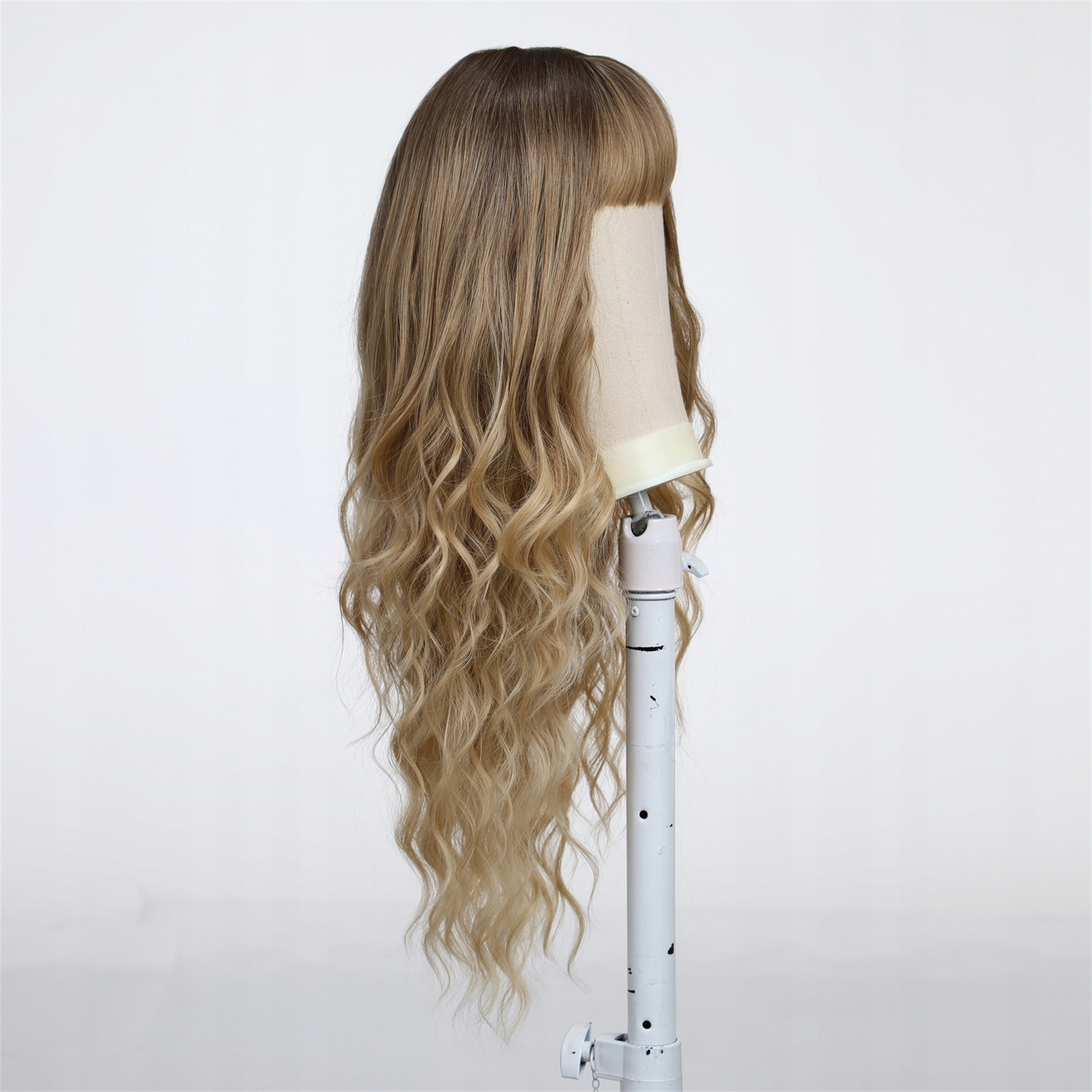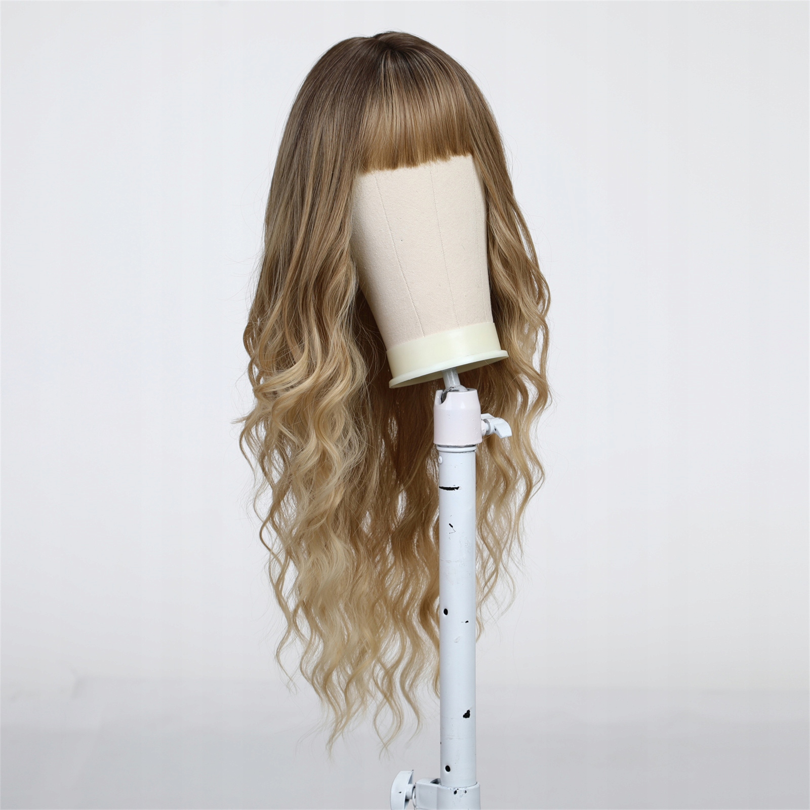 Світло-коричнева перука омбре, довге волосся, хвилі з природним чубчиком