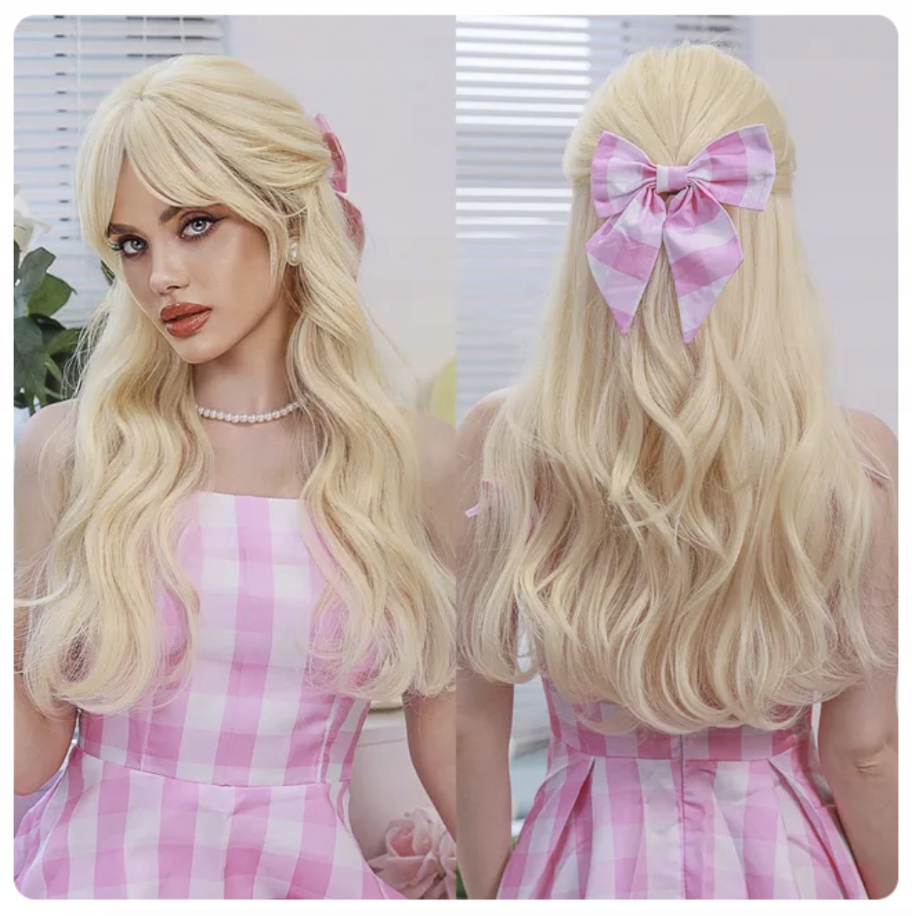 - Перука ідеально імітує волосся з фільму Барбі.
