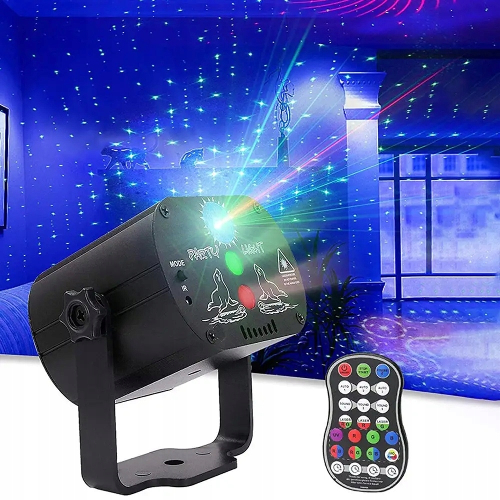 Дискотечне ритмічне світло має режим звукового датчика та оснащений пультом дистанційного керування, завдяки якому світло сцени може вільно змінюватися в ритмі музики, створюючи ефект диско-кулі та сценічного освітлення. Зробіть вечірку цікавішою!