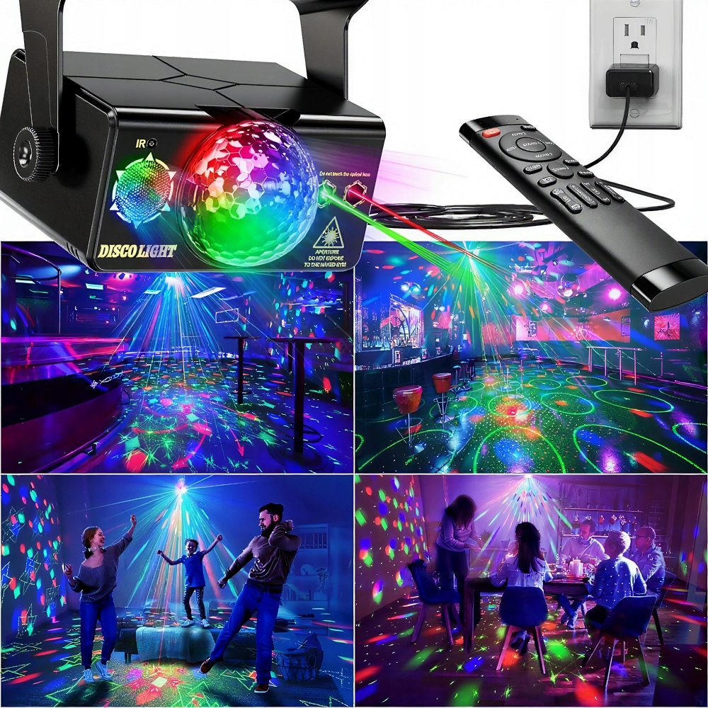 • Повний контроль: Пульт дистанційного керування дозволяє змінювати кольори, режими (автоматичний, стробоскоп, зовнішній звук) і встановлювати таймер. 🕒