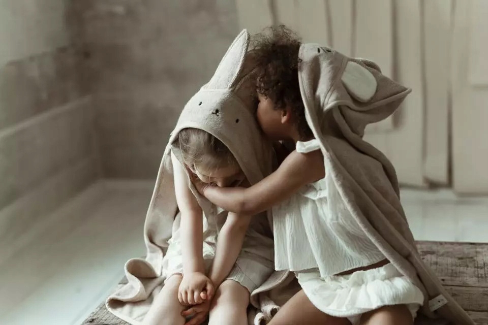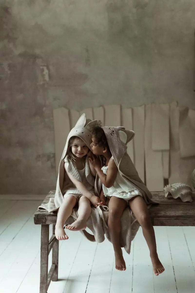 Цей рушник не звичайний. Має милі вушка та вишиті деталі на капюшоні. Але це ще не все! Ззаду є спеціальний джгут, який полегшує батькам тримати рушник на шиї. Завдяки цьому після купання ви можете відразу обійняти дитину, даруючи їй відчуття близькості та безпеки.