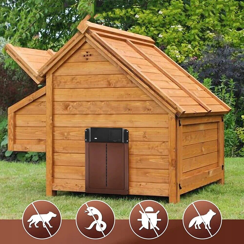 🐔 【Автоматичні двері для курятника】-Автоматичні двері для курятника надзвичайно прості у використанні, вони працюють від батарейок і не потребують розетки, що робить їх придатними для використання на вулиці; покращений датчик світла більш чутливий; також добре працює під час штормів і високих температур.