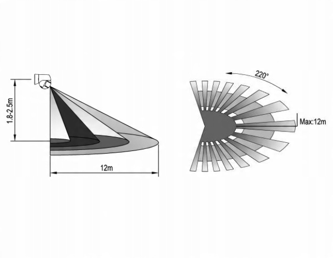 - ВЕЛИКА ДАЛЬНІСТЬ ВИЯВЛЕННЯ ТА КУТ ОГЛЯДУ ДАТЧИКА РУХУ - 12 МЕТРІВ, 220° ul>