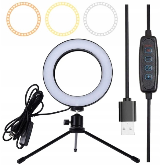 світлодіодна кільцева лампа з можливістю змінити колір білого (холод / тепло / нейтральний).