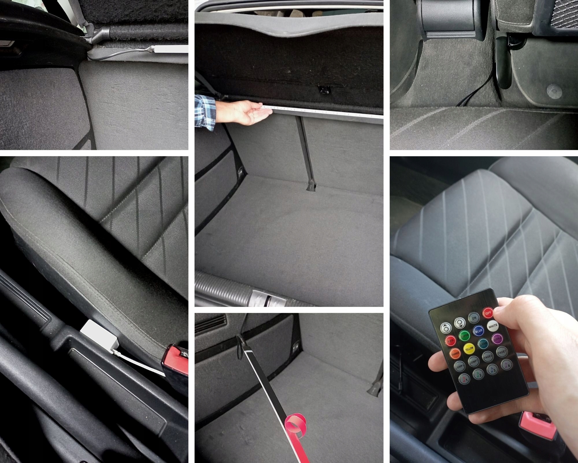 - Зміна кольору або строба до ритму музики, що відтворюється на смартфоні або всередині автомобіля
