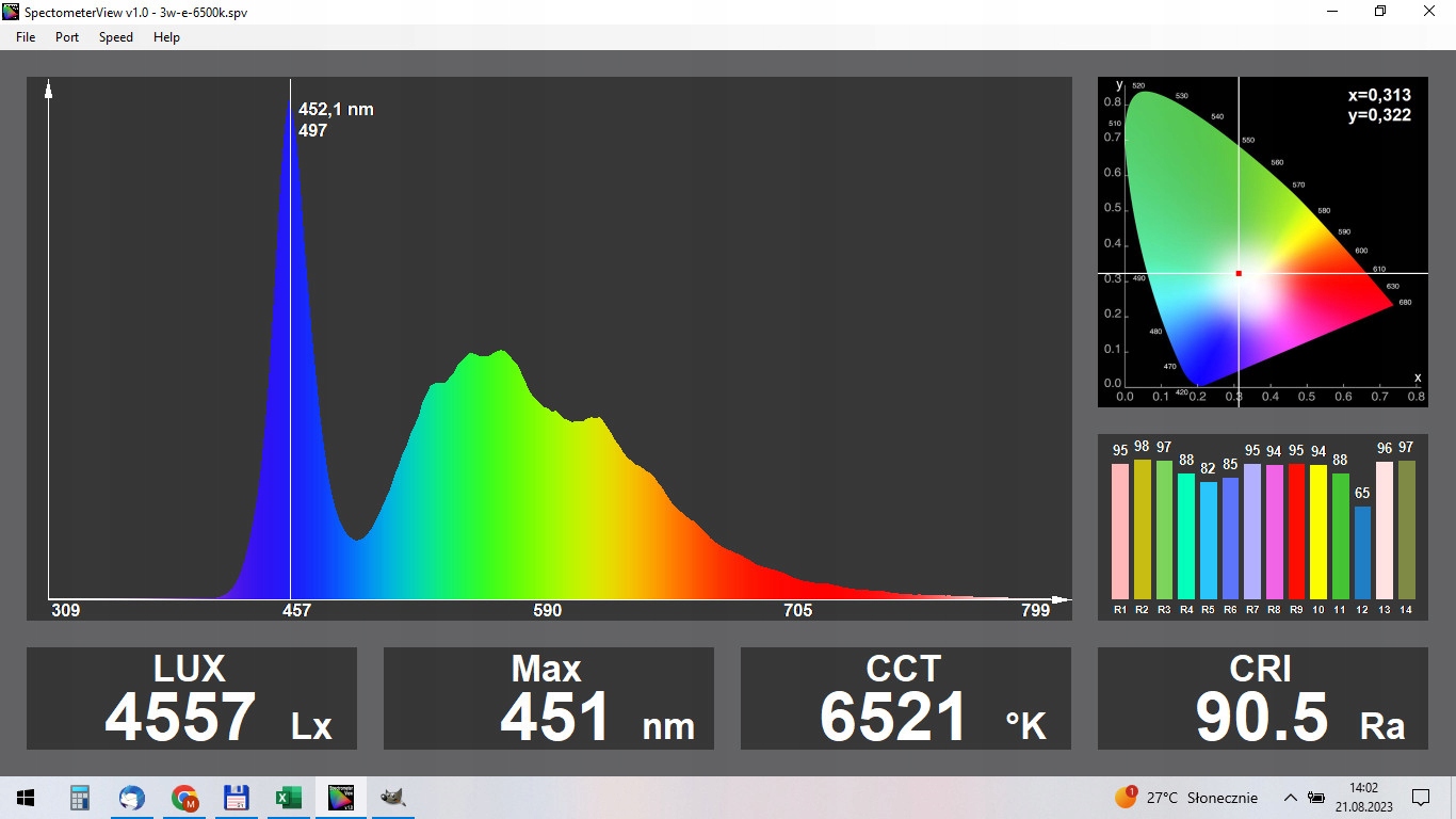 - колірна температура - 6000K - 6500K (*6521K)