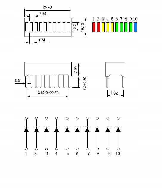 Світлодіод Rgby 10 Seg 2x червоний, 3x жовтий, 4x зелений 1x синій (3767
