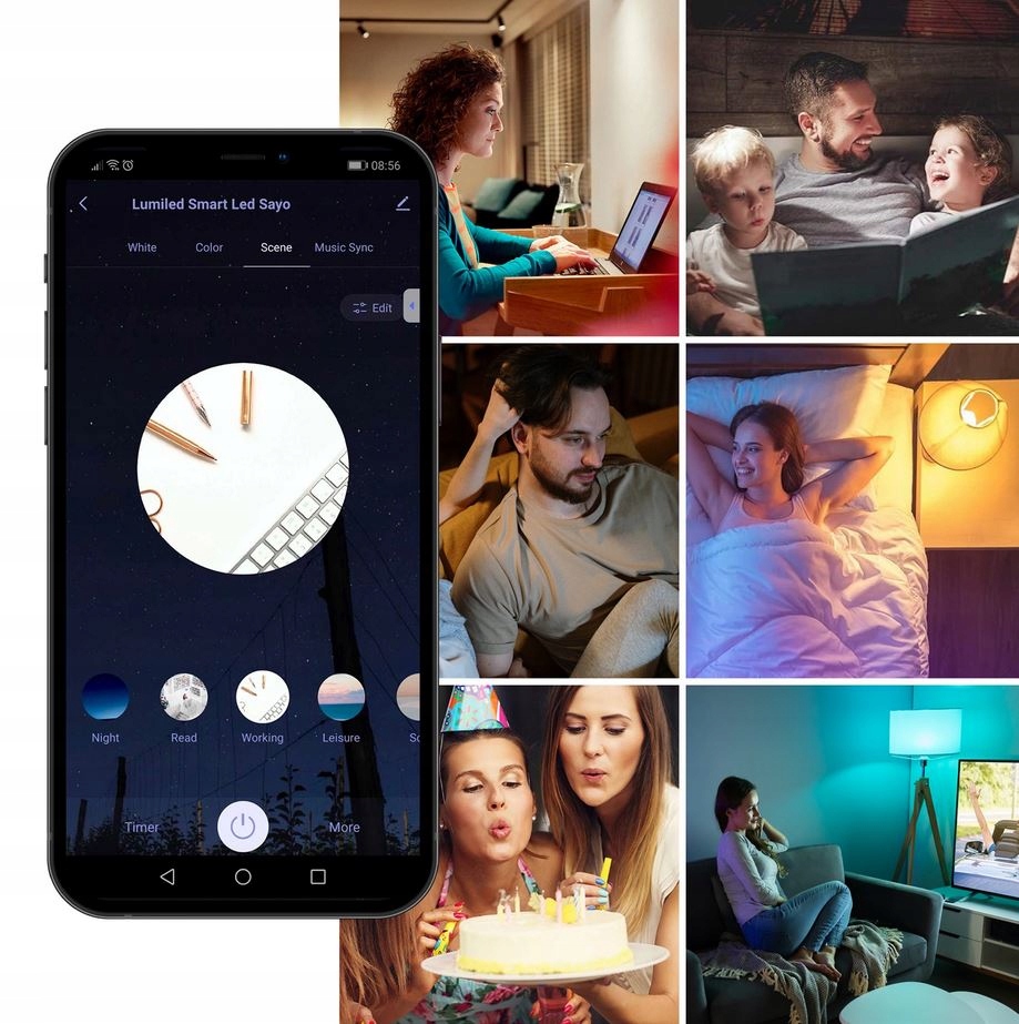 - Гладке регулювання кольору Світло та колір - rgb та cct (16 мільйонів кольорів)