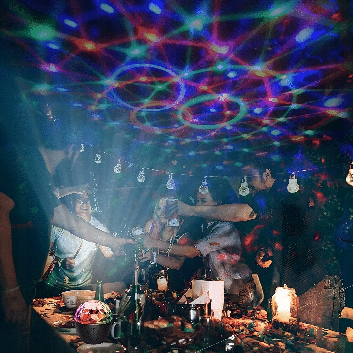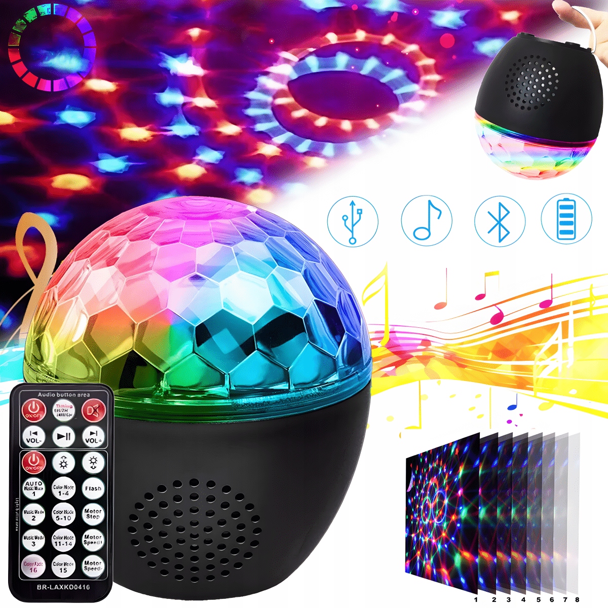 Світлодіодна диско-куля з 16 підсвічуваннями, кругла вечірка на день народження з музичним керуванням