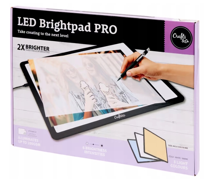З дошкою для малювання з підсвічуванням ви можете створювати навіть найточніші проекти - завдяки використанню світлодіодного підсвічування (з 3 рівнями яскравості) дошка переекспонує папір таким чином, що точне відтворення оригіналу не є проблемою (це не викликає ефекту розмитих візерунків).