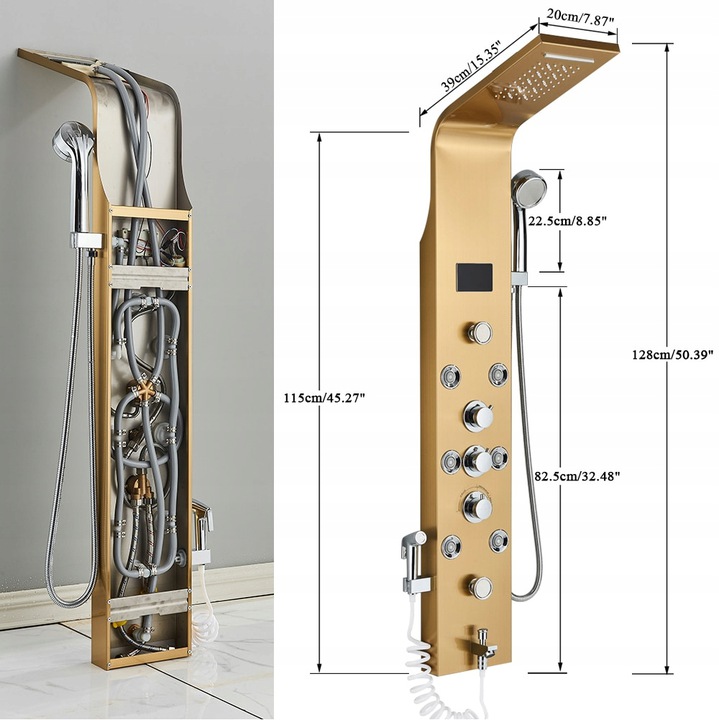 Ця чудова багатофункціональна панель з тропічним душем і гідромасажем містить усі необхідні елементи для встановлення у вашій ванній кімнаті, ванній кімнаті чи приватному SPA.