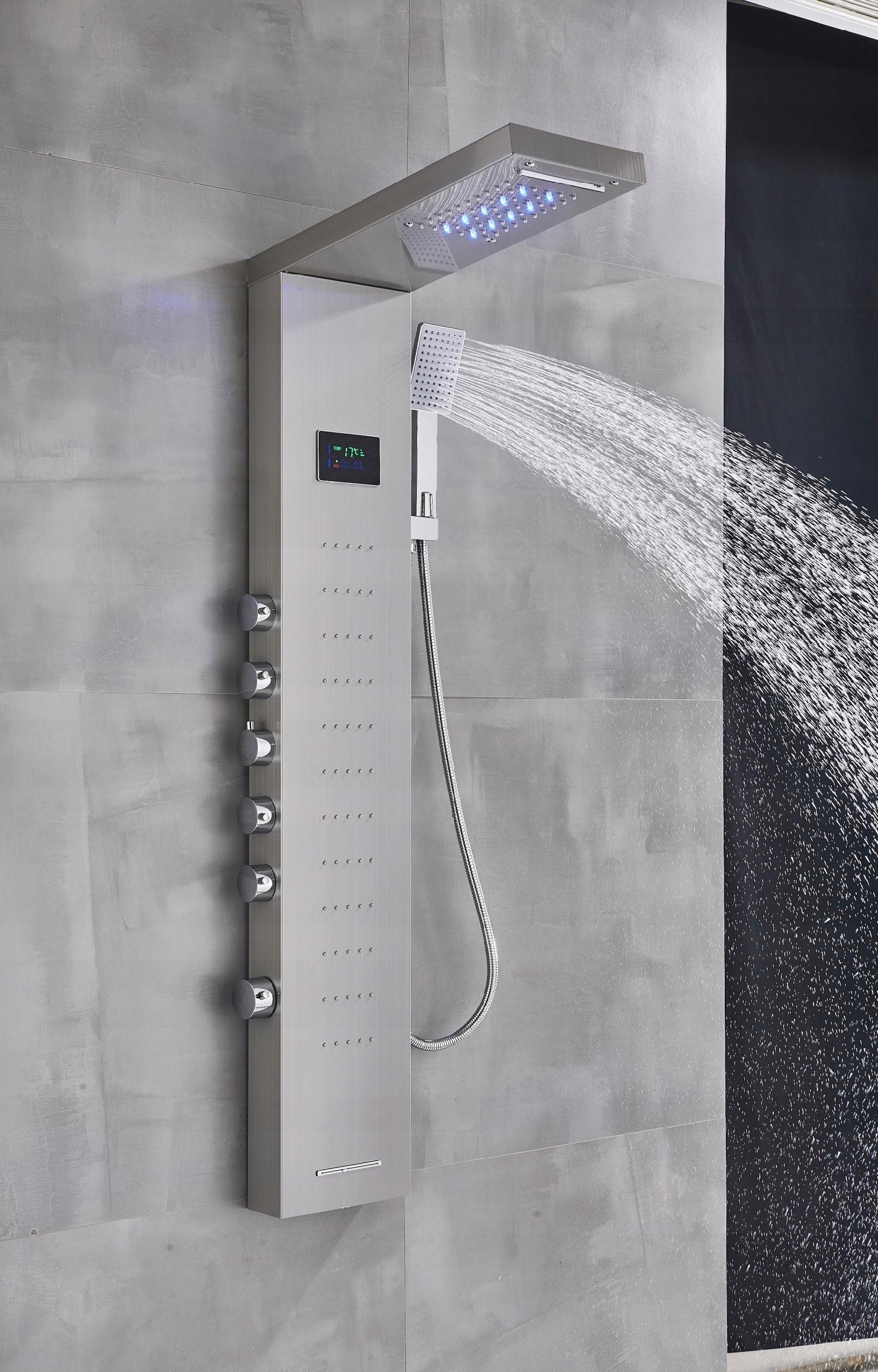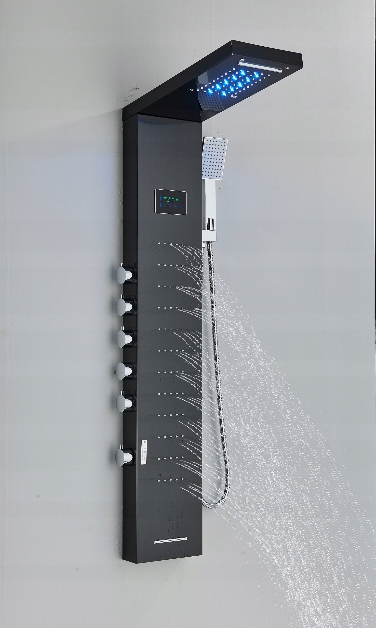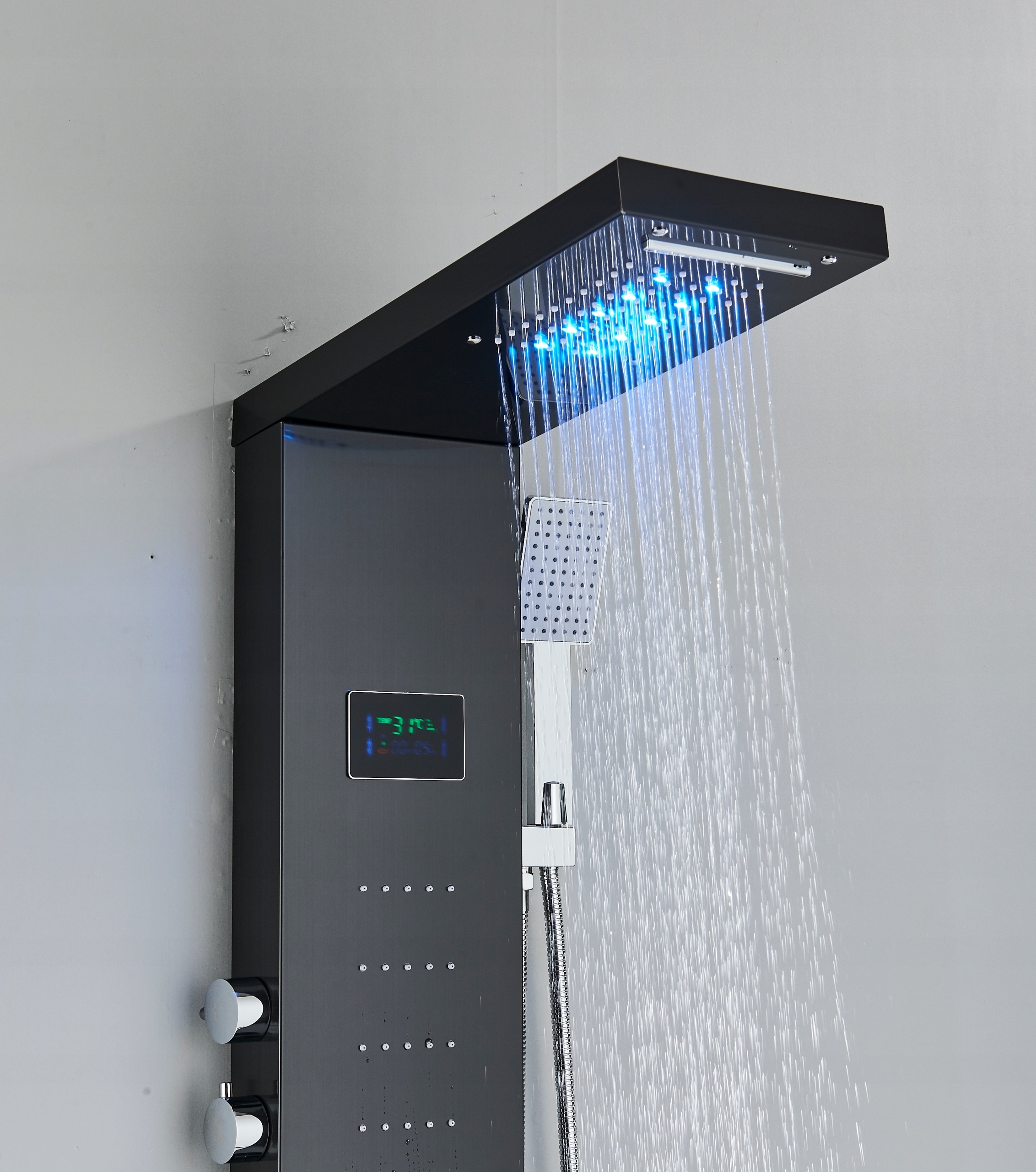 Світлодіодна душова панель з дисплеєм, тропічним душем, гідромасажем і багатофункціональною душовою ручкою