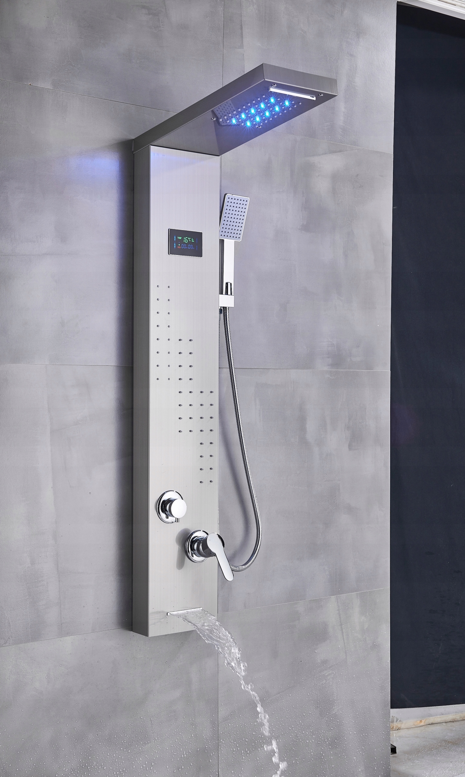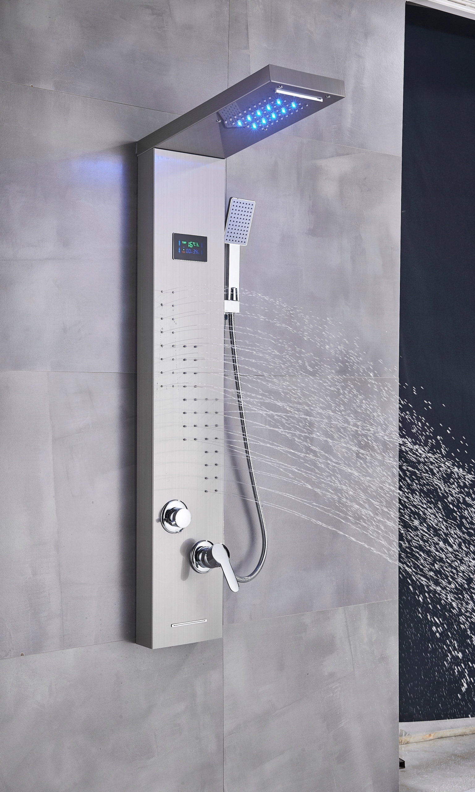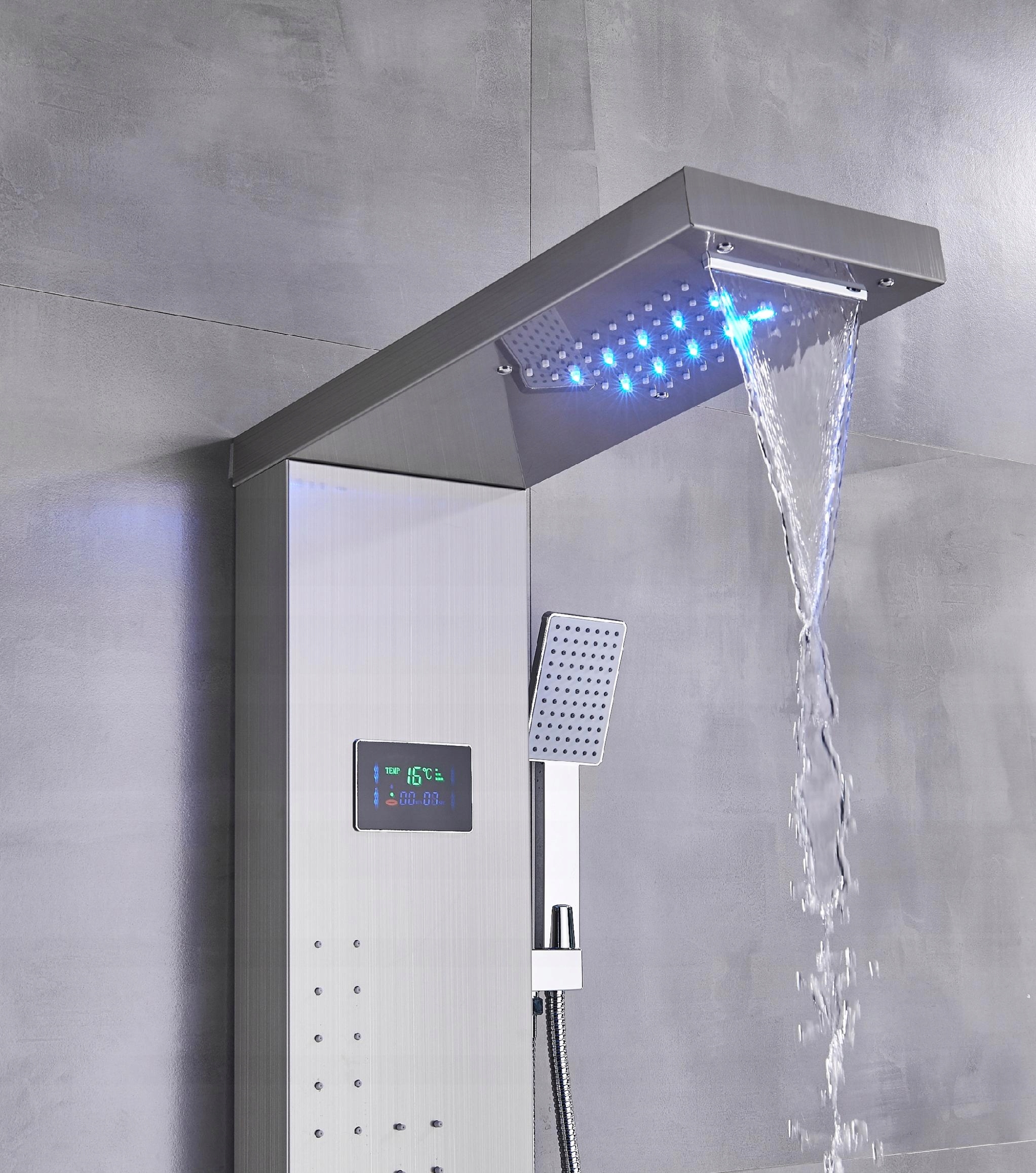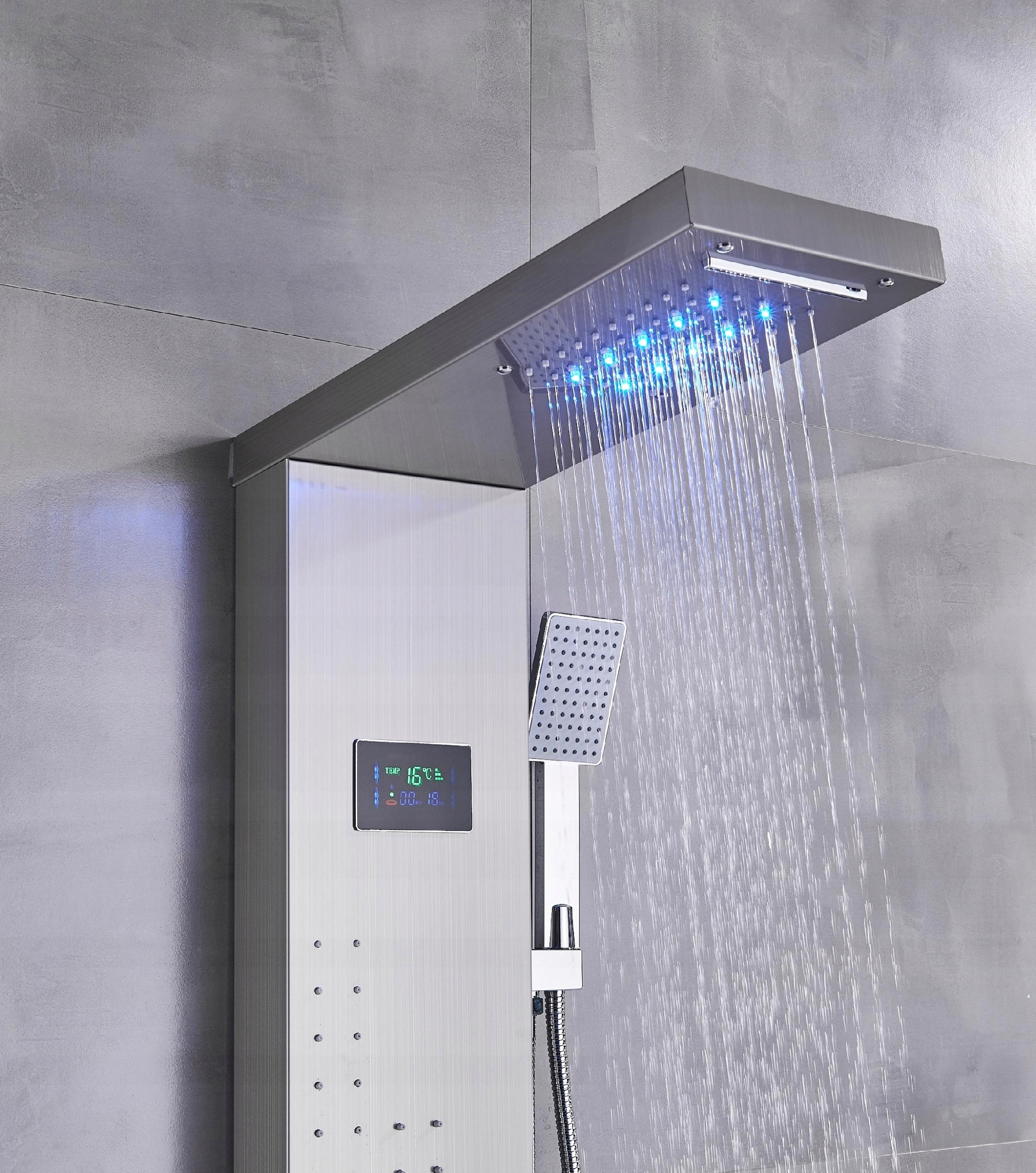 Світлодіодна душова панель з дисплеєм, тропічним душем, гідромасажем і багатофункціональною душовою ручкою