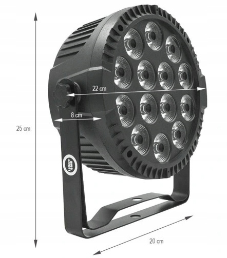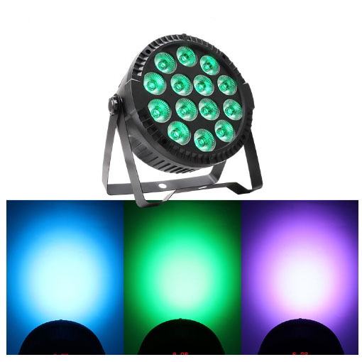 Джерело світла 14 x 6 Вт, що може створити необмежене змішування кольору та ефекти веселки. Вбудовану програму можна контролювати за допомогою консолі, 0-100% лінійного затемнення та затемнюючої функції, забезпечуючи дивовижний візуальний досвід під час класів розваг.