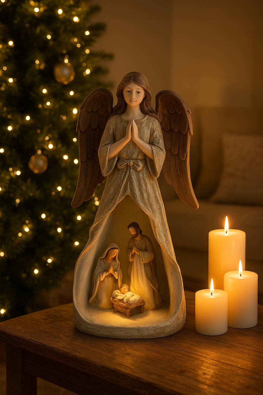 Незалежно від того, чи шукаєте ви подарунок для своїх близьких чи просто хочете додати шарму своєму інтер’єру на Різдво, наш РІЗДВЯНИЙ КРЕБІК з ангелом – ідеальний вибір. Ніжний, сучасний дизайн і чарівне світлодіодне освітлення зроблять це свято ще більш особливим.