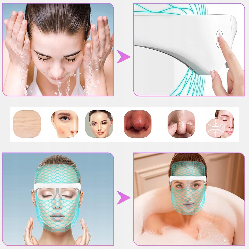 --СВІТЛОТЕРАПІЯ ДЛЯ ОБЛИЧЧЯ З 7 КОЛЬОРАМИ МАСОК ПРОТИ ЗМОРШОК ТА СТАРІННЯ ДЛЯ КОЖНОЇ ШКІРИ--