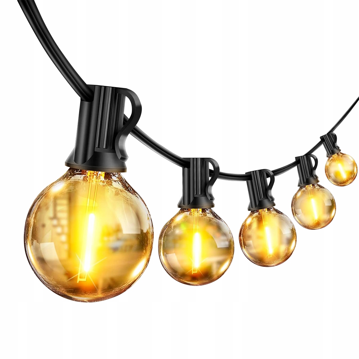 Світлодіодні лампи виглядатимуть ще красивіше, якщо їх повісити горизонтально. Наша 18-метрова світлодіодна стрічка G40 містить 30+1 лампочок. Ви можете повторити свою покупку, оскільки ланцюговий ліхтар можна безпосередньо підключити до наступного, який легко встановити та дозволяє нескінченно розширювати. Струна легкого ланцюга виготовлена з гуми, яка є більш гнучкою та безпечнішою, ніж традиційні мотузки.