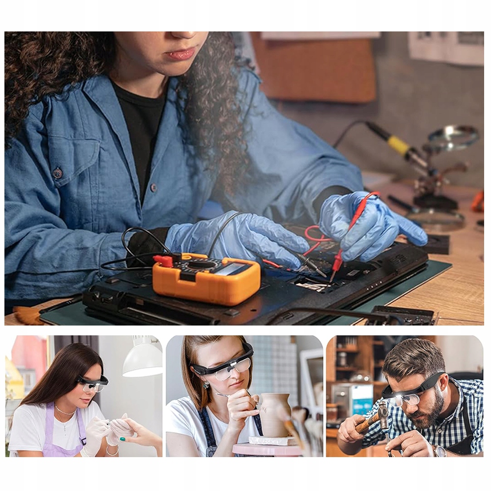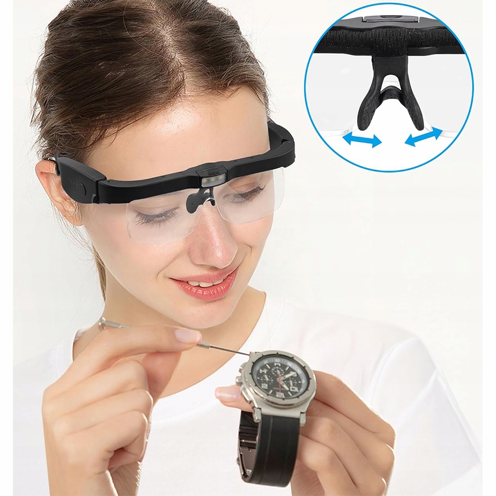 - Гнучка пов'язка на голову: її можна додатково прикріпити, що забезпечує свободу рухів рук. Ви працюєте, не турбуючись, що ваші окуляри перекинуться – ефективність вашої роботи підвищується!
