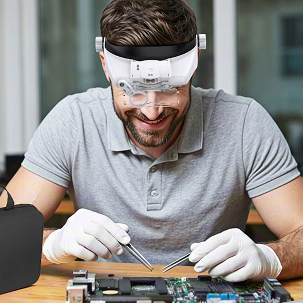 Регулювання наголів'я дозволяє ідеально прилягати до голови, а відсутність носових подушечок виключає тиск на ніс при тривалому використанні. Він стабільно утримує лупу, дозволяючи вам повністю зосередитися на роботі.