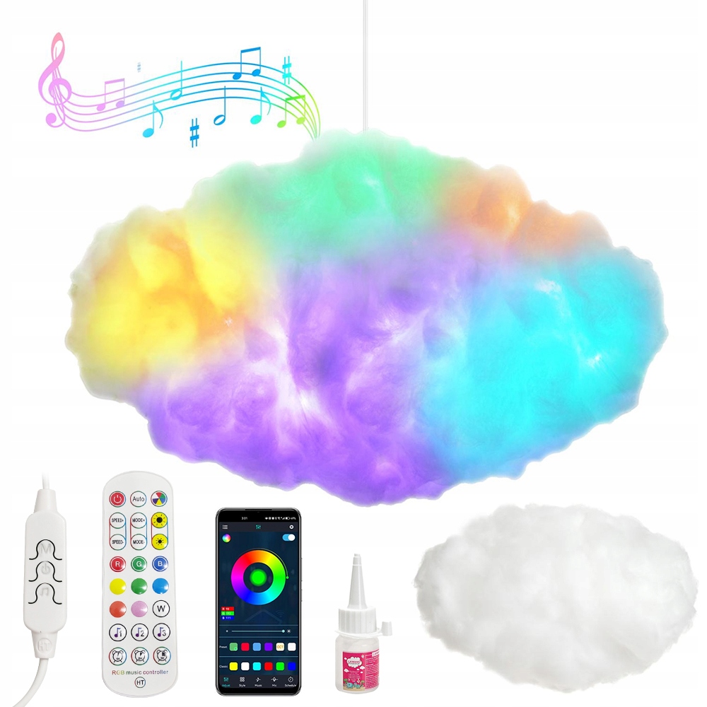 - 🌈- Можливість управління за допомогою пульта дистанційного керування, застосування та контролера на шнурі живлення. Легко змініть колір хмари, щоб створити прекрасну атмосферу.