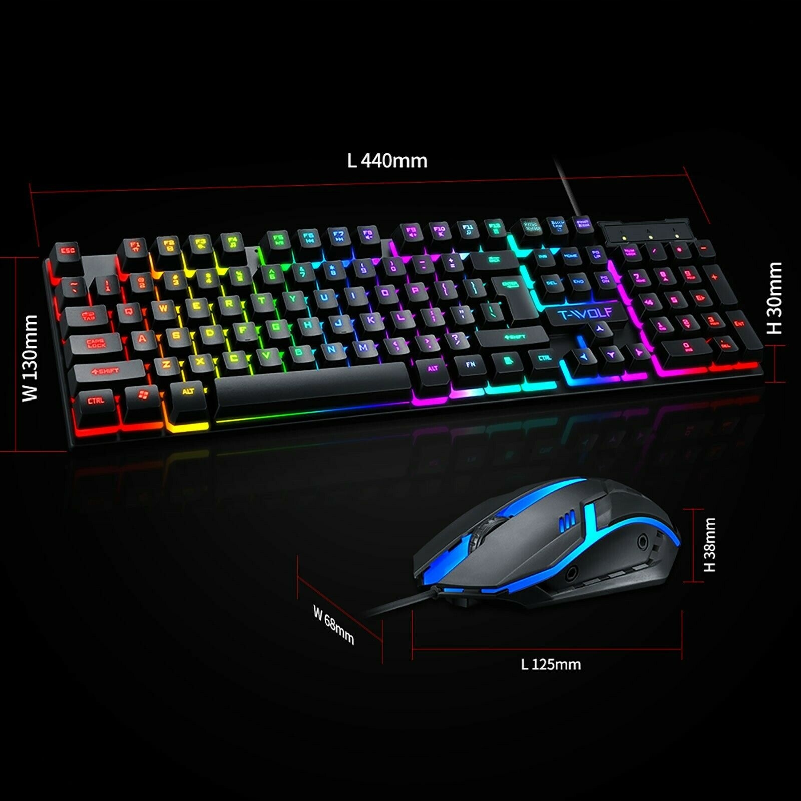 ⚡Стильне світлодіодне підсвічування Клавіатура має світлодіодне підсвічування всіх кольорів веселки, що надає їй вражаючого вигляду . Ця функція також полегшує роботу в темряві, не напружуючи очі.