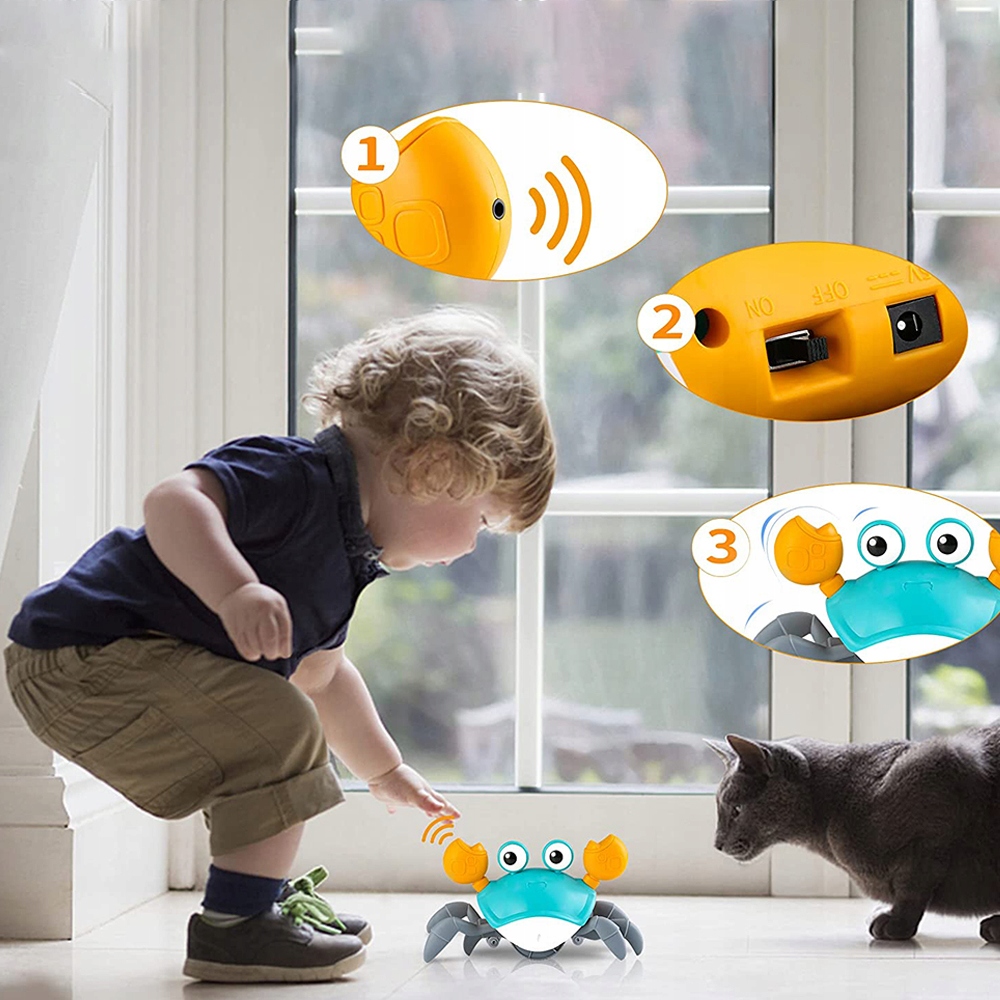 🦀【Іграшка-повзаючий краб】 Ці електричні іграшки-повзаючі краби використовують інфрачервоний датчик. Якщо під час руху вони зустрінуть перешкоди, вони з часом рухатимуться у зворотному напрямку.