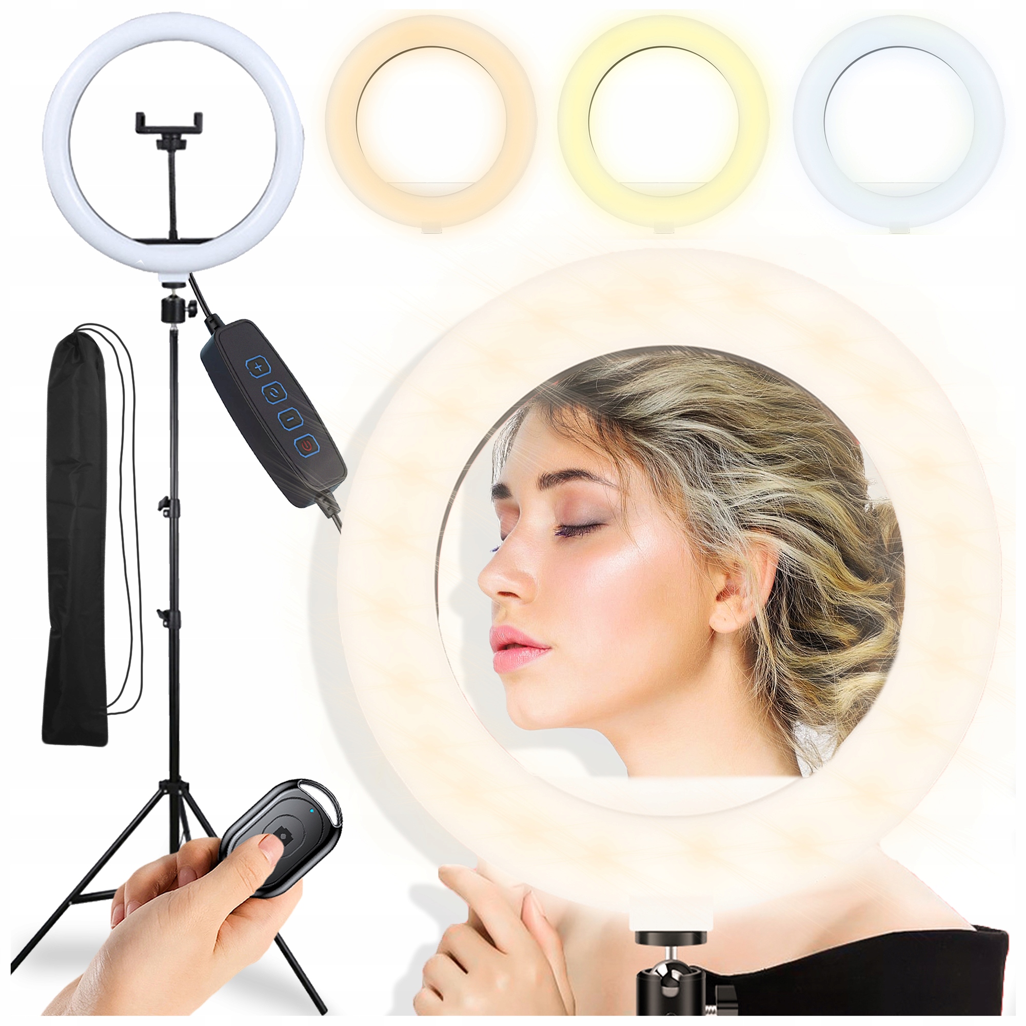 забезпечує рівномірне, м'яке освітлення обличчя та персоналу. Тіні та підкреслює природну красу шкіри - ідеально підходить для фотографій, макіяжу та фільмів.